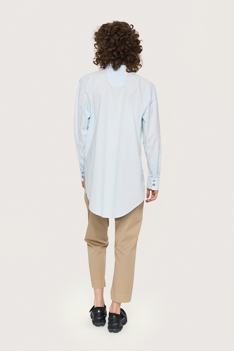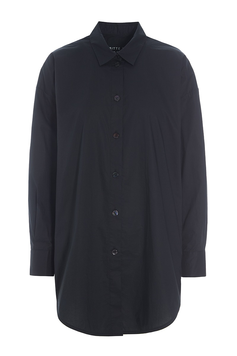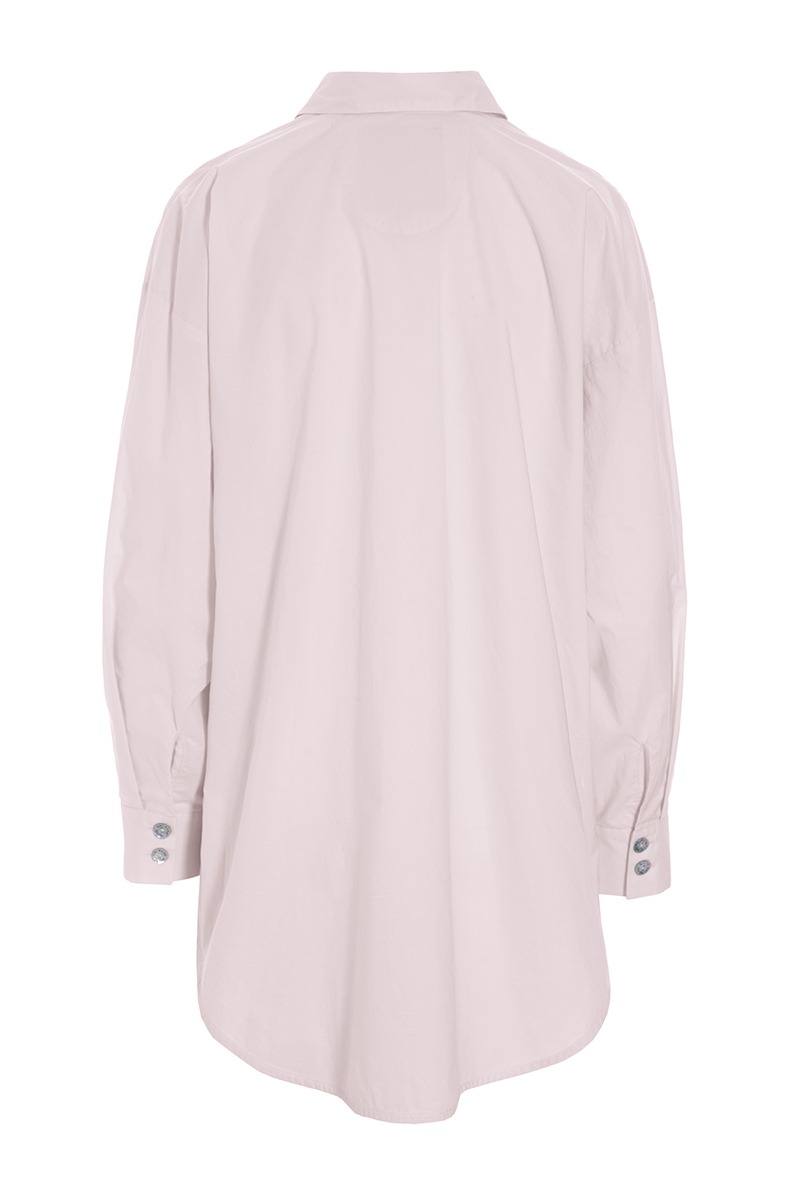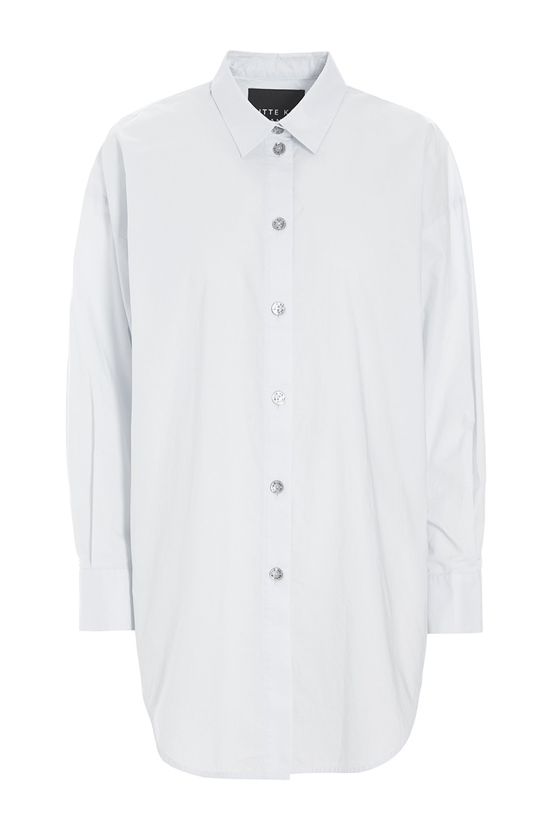 - Gennemgående lukning med perlemorsknapperli>Lange ærmer med manchetter