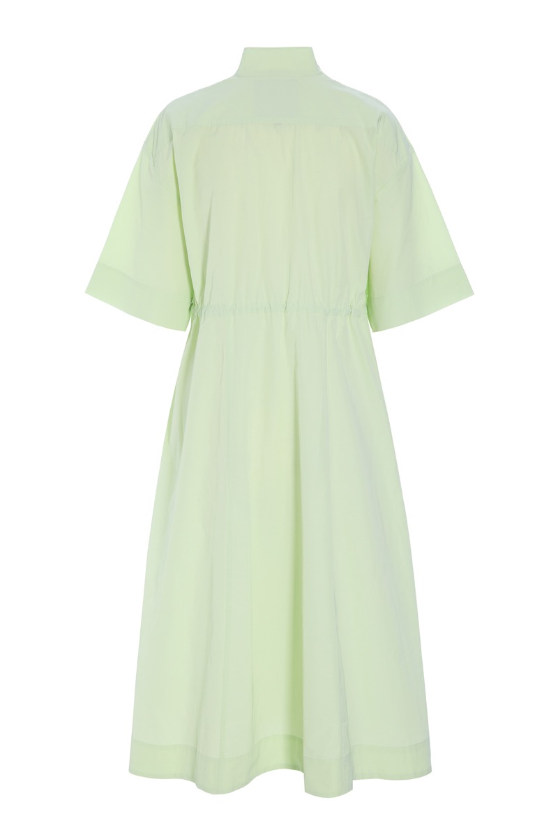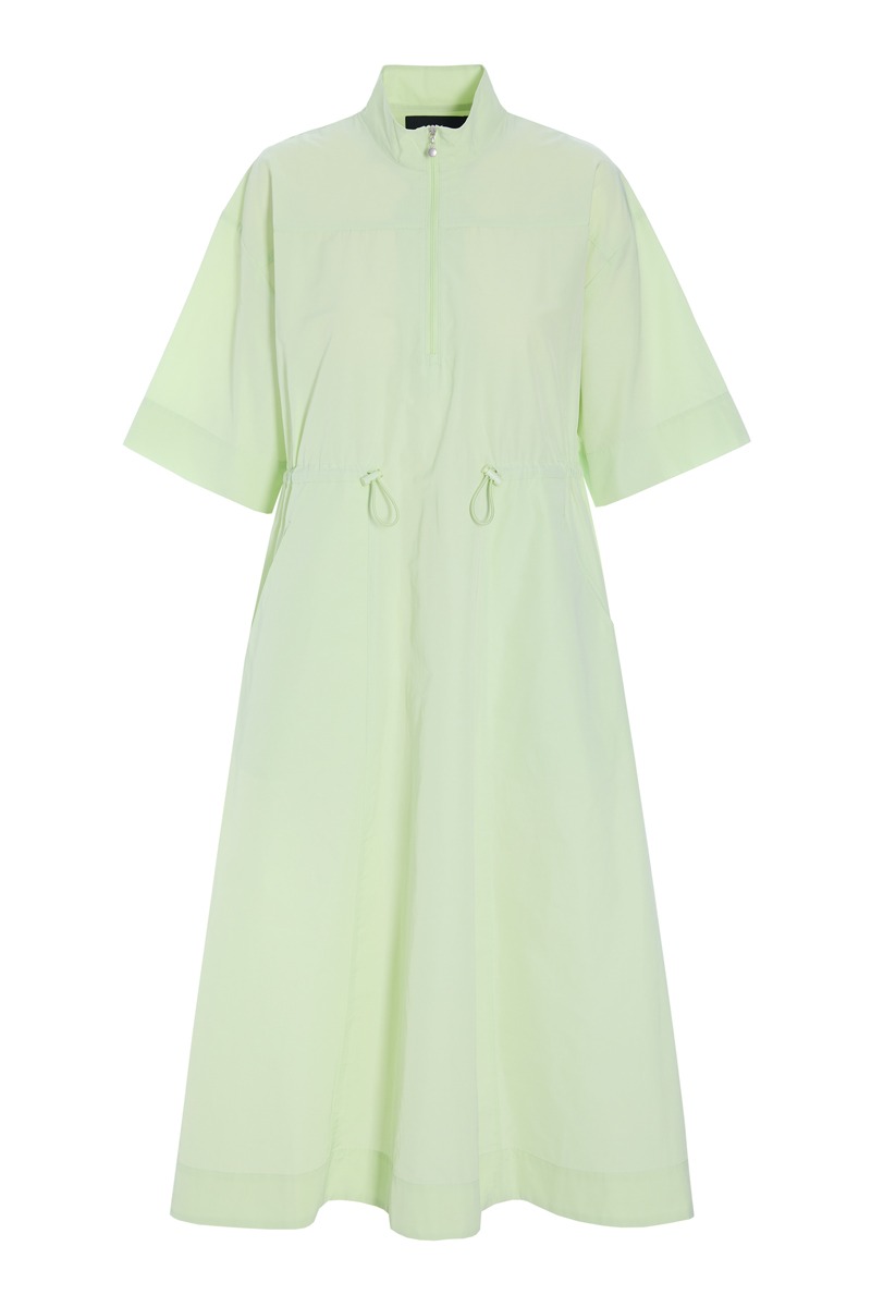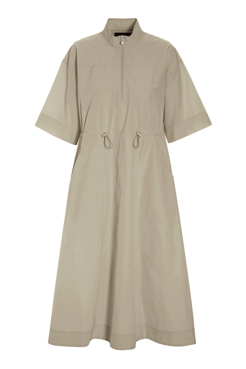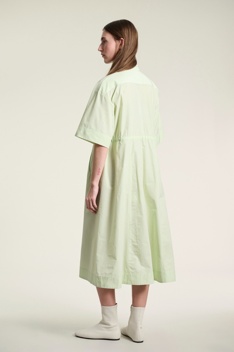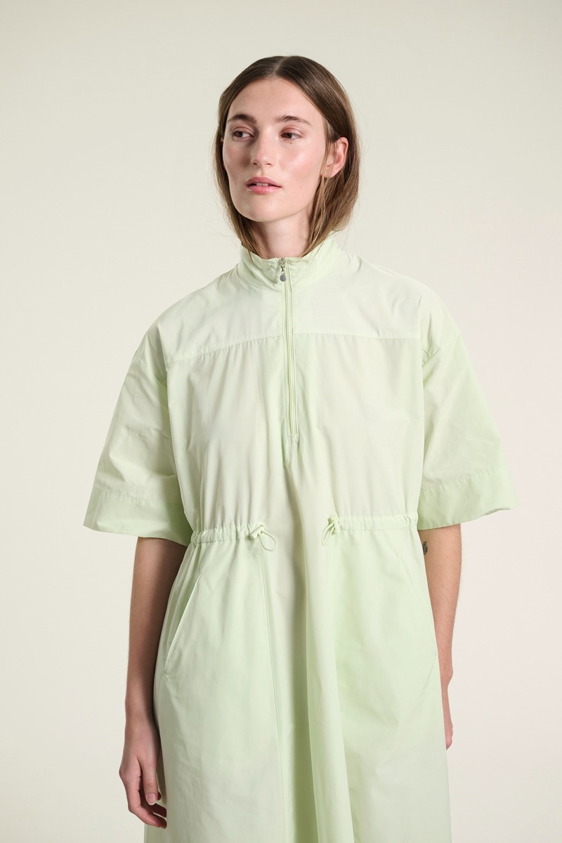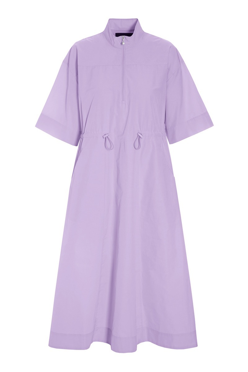 Enkel kjole i et design, hvor et sporty udtryk møder et elegant snit. Kjolen har lynlåslukning, og taljen markeres med en elastikstrop, der kan spændes ind og ud alt efter, hvilken pasform du ønsker. En klædelig kjole, som kan styles på mange måder.