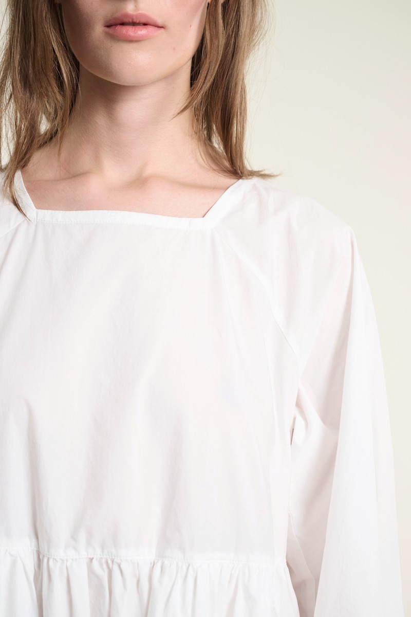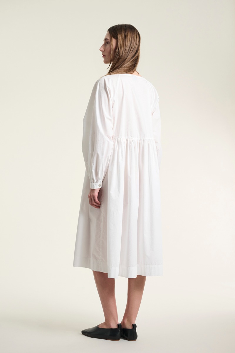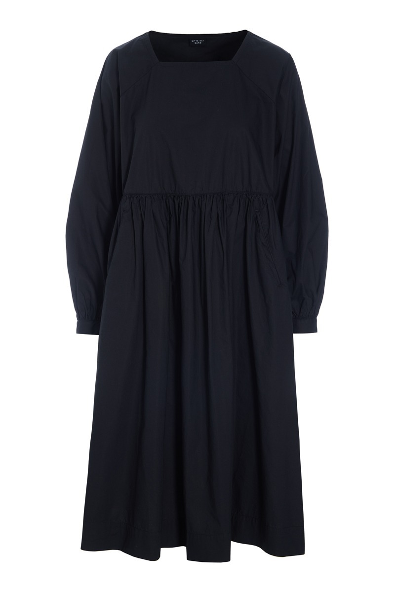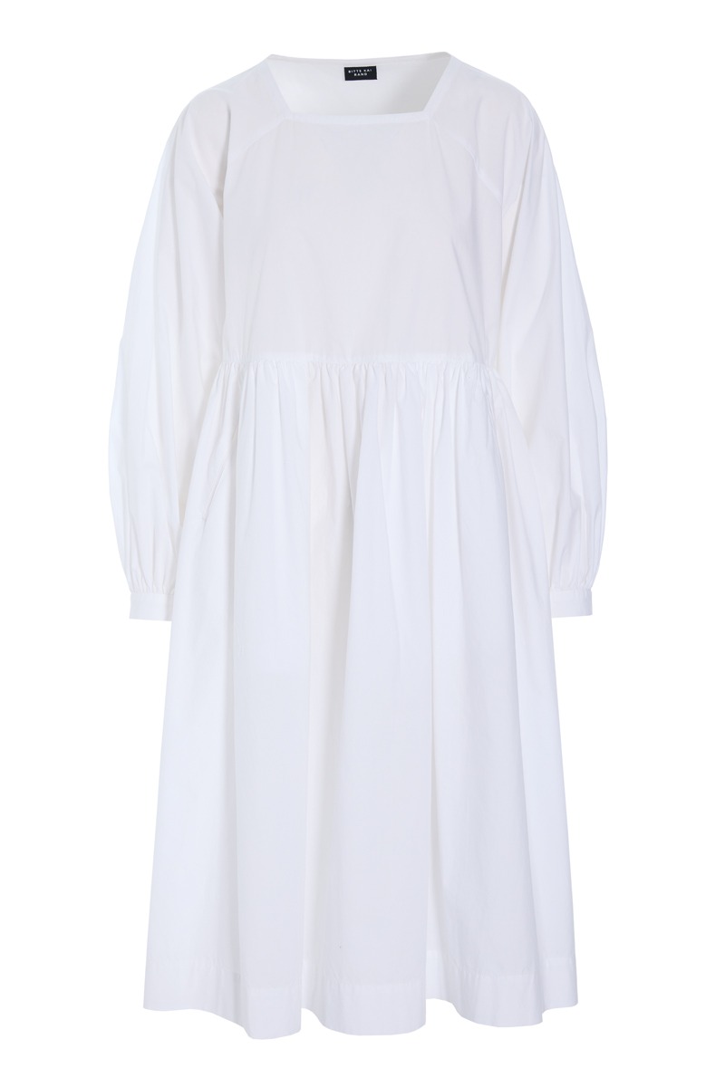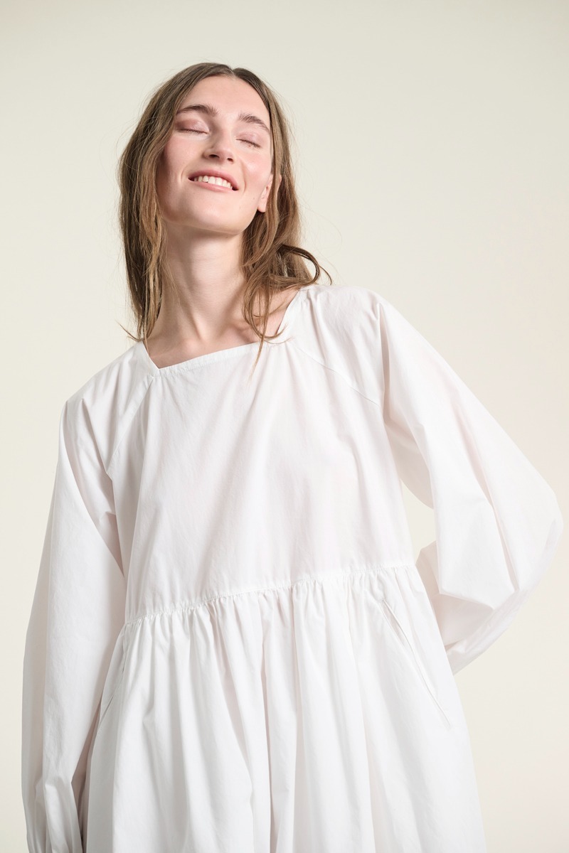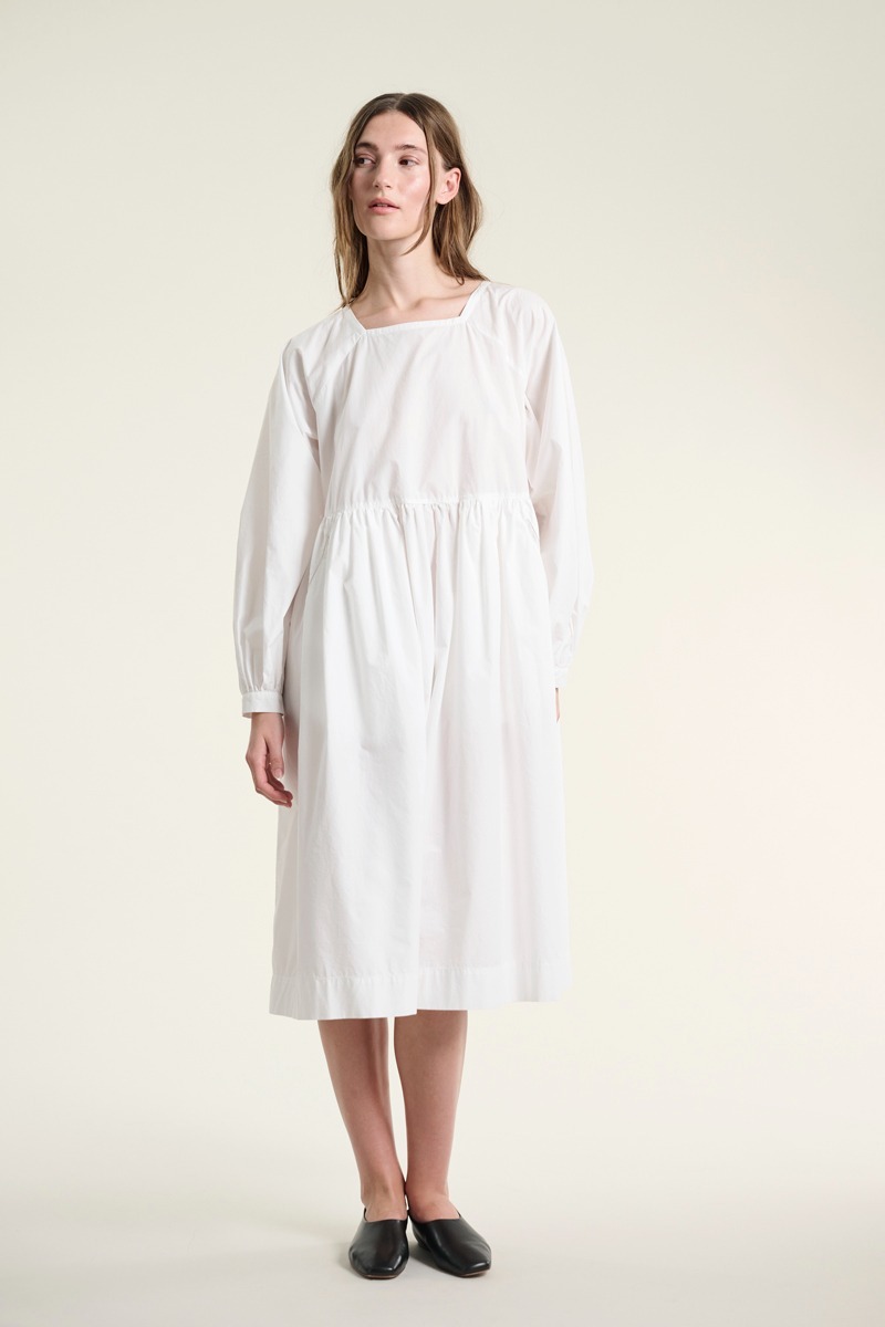 En fin kjole med raglanærmer og i 100% økologisk bomuld. Kjolen har en skæring i livet, hvilket skaber en smuk, feminin silhuet. En tidløs kjole, som kan styles på et utal af måder. Brug den i al sin smukke enkelhed. Sæt tørklæde eller bælte til. Kjolen er også flot med en vest eller blazer over.