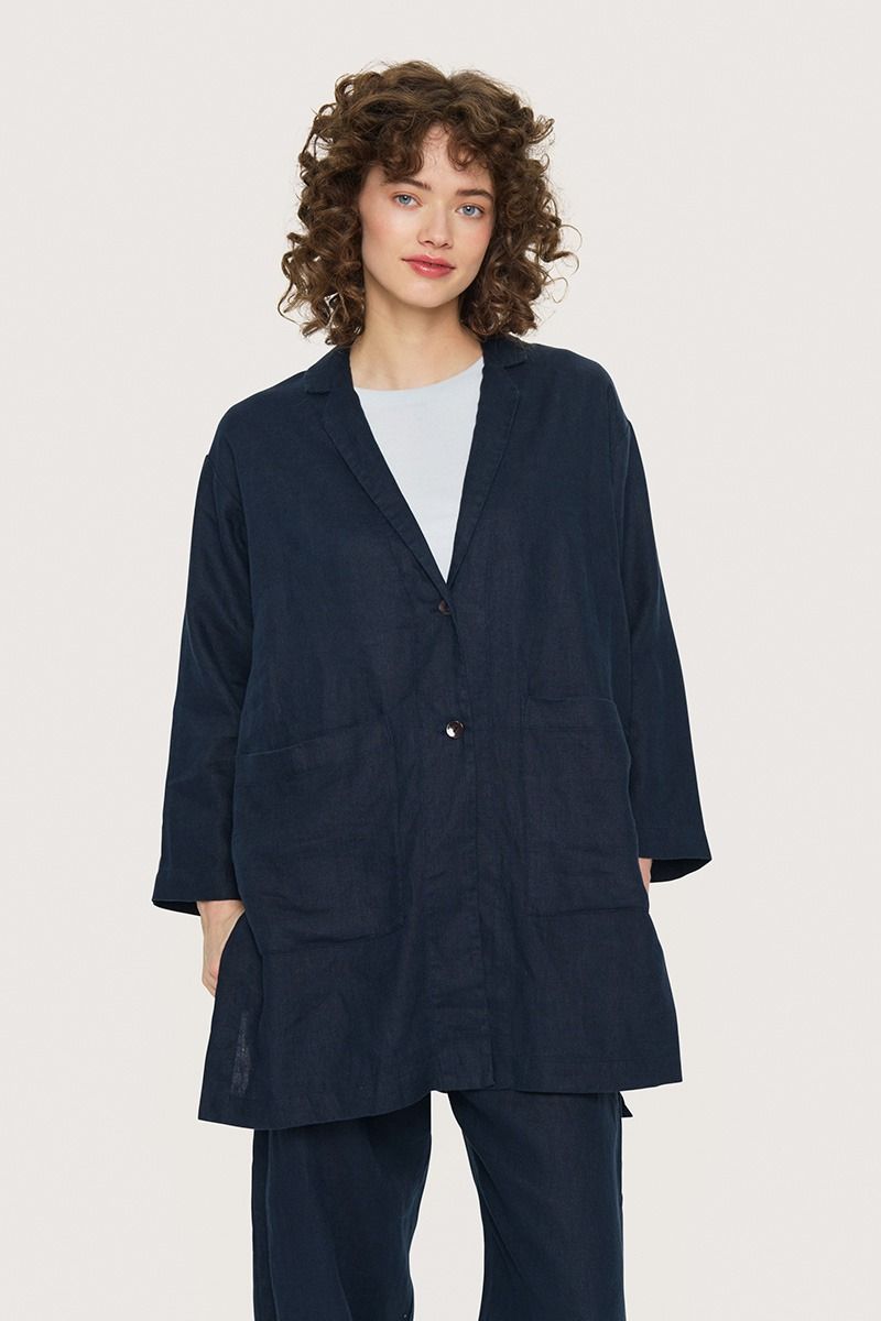 Fuld længde i størrelse 1, ca. 88 cm. Fit: Moderat oversize