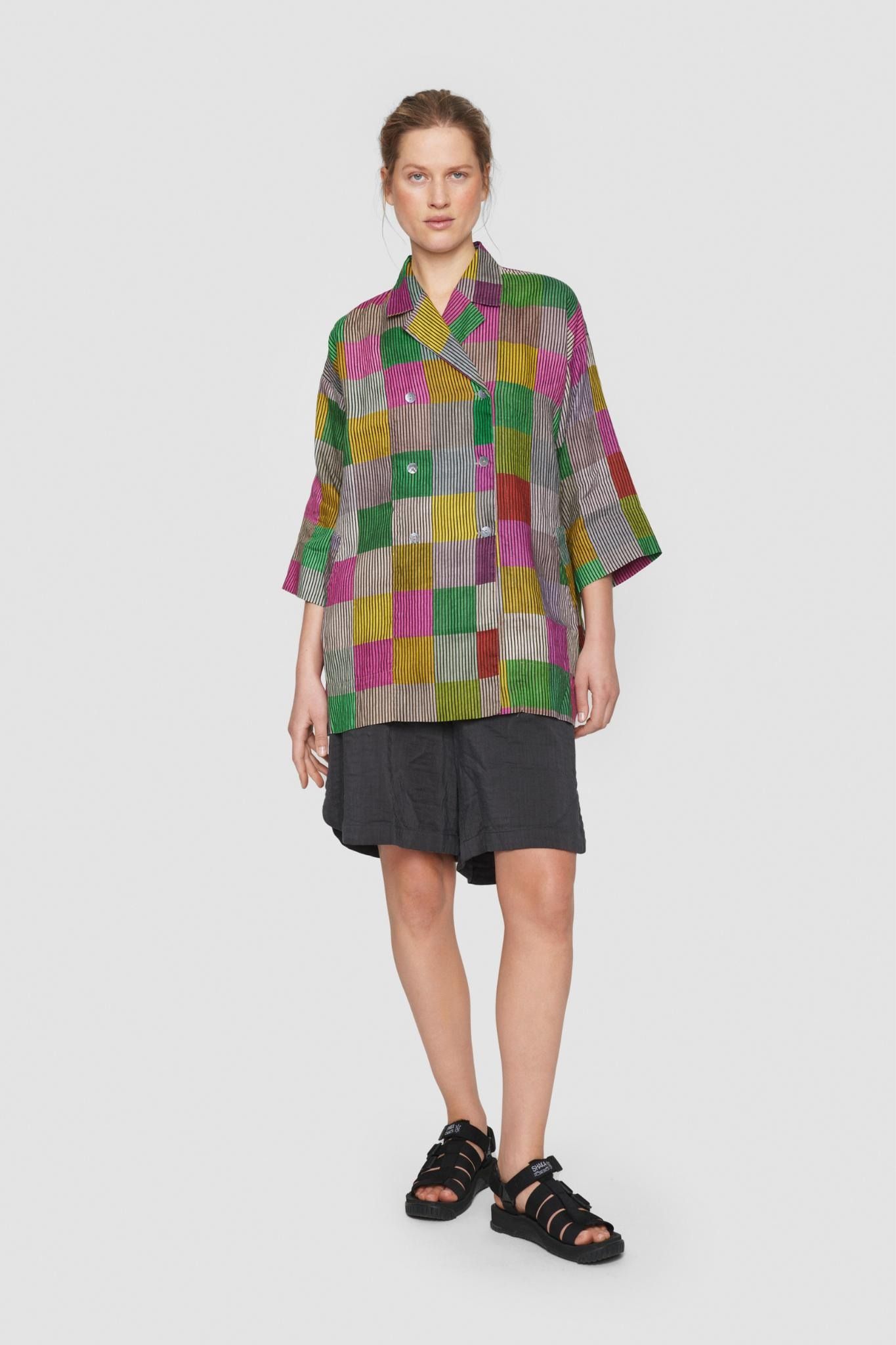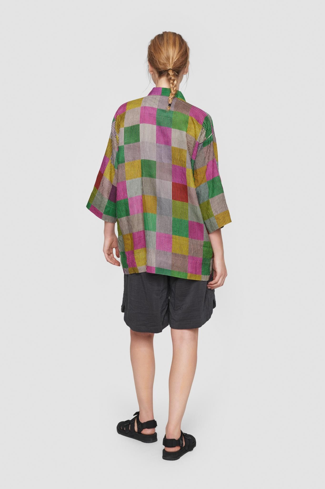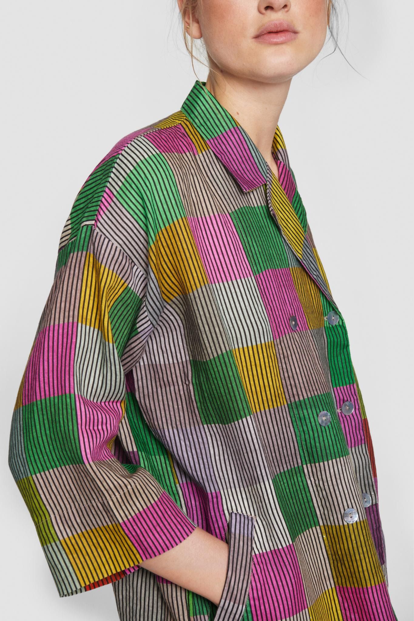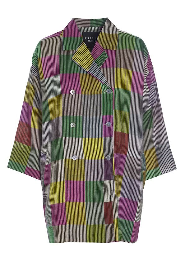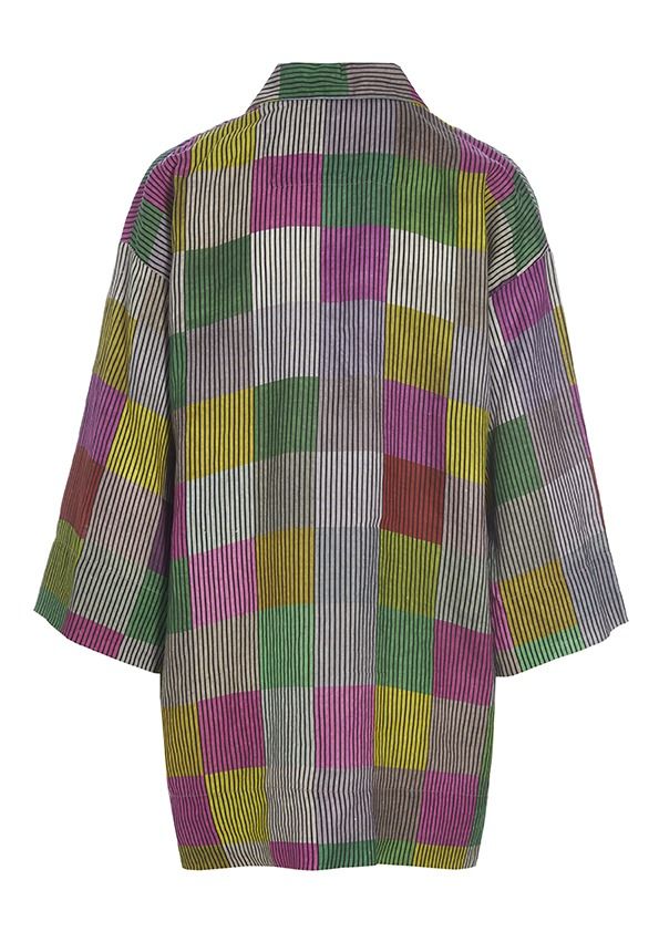 - Mehrfarbiges Karomuster auf gestreiftem Grund