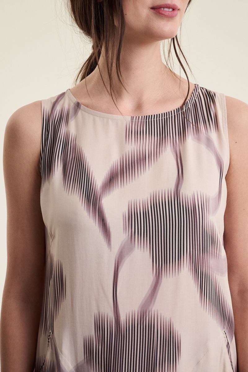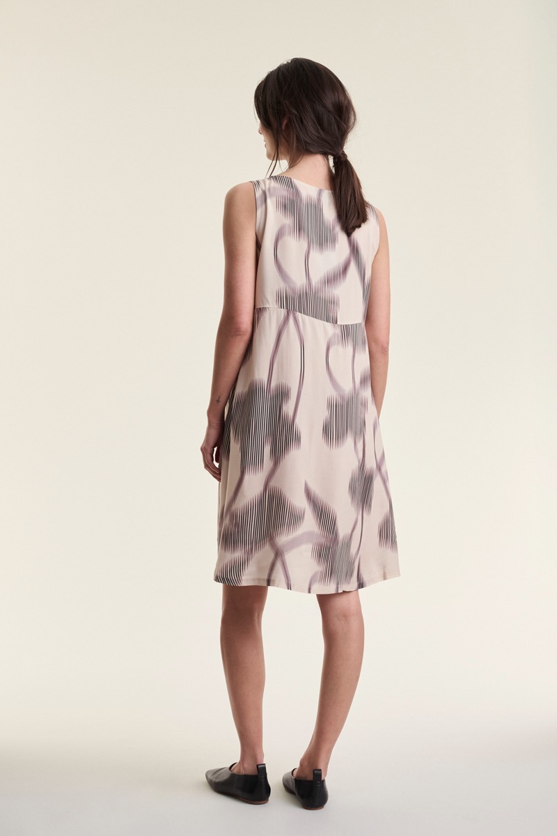 Kurzes Kleid mit einem schönen Print, der för einen kunstvollen Look sorgt. Das Kleid fällt schön um den Körper, ist ärmellos und ganz schlicht im Design. Die weiche FSC-zertifizierte Viskosequalität macht das Kleid leicht und luftig zu tragen.
