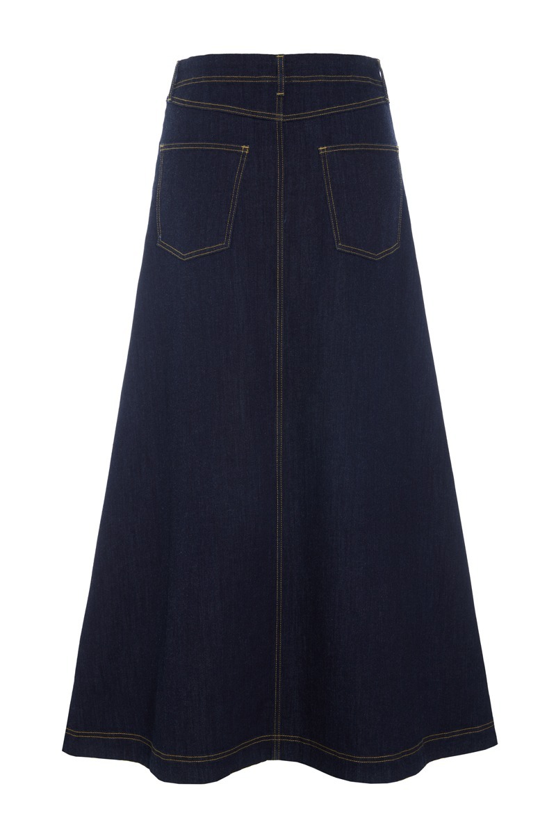 Rock aus hochwertigem Denim mit einer schönen langen Silhouette. Der Rock sitzt hervorragend und ist gleichzeitig elegant und lässig. Ein unverzichtbares Kleidungsstöck för Ihre Garderobe, das sich mit jedem Oberteil kombinieren lässt.