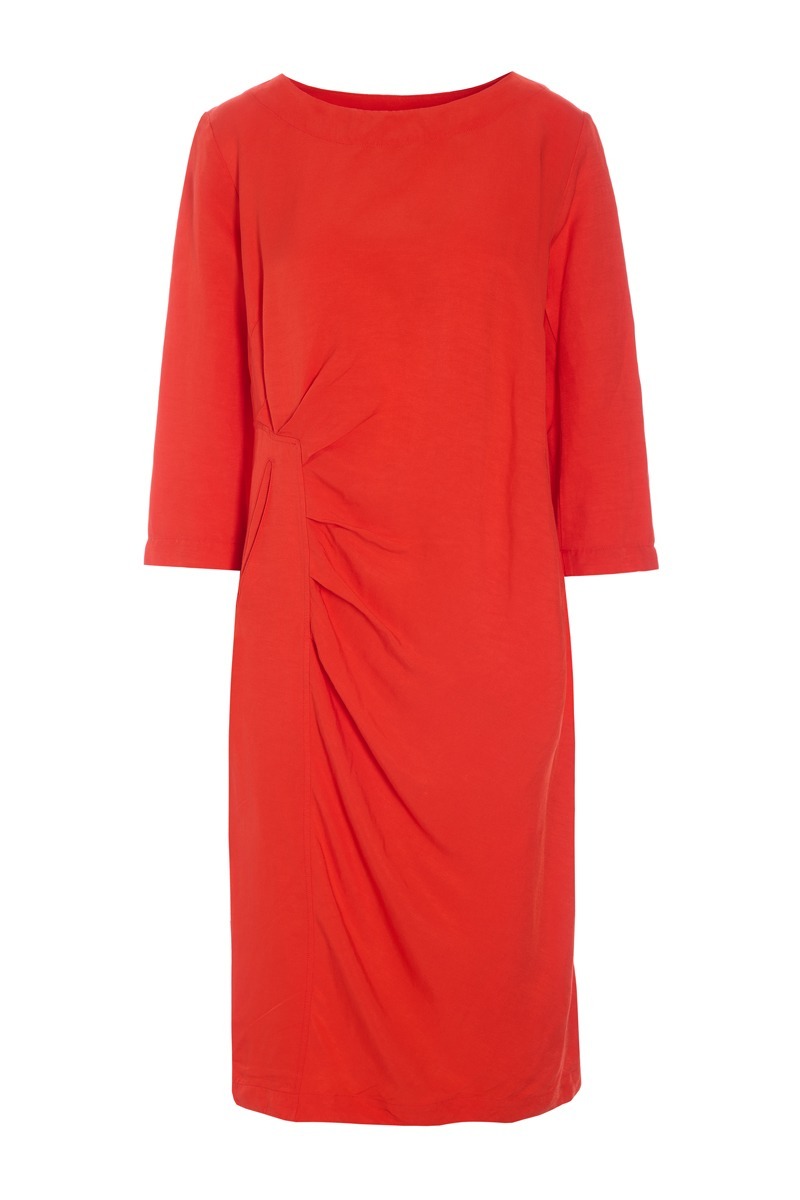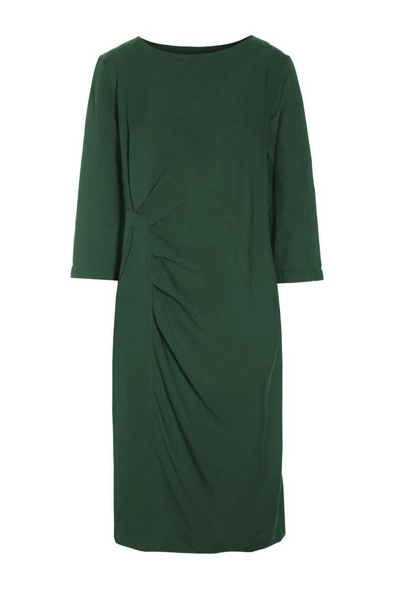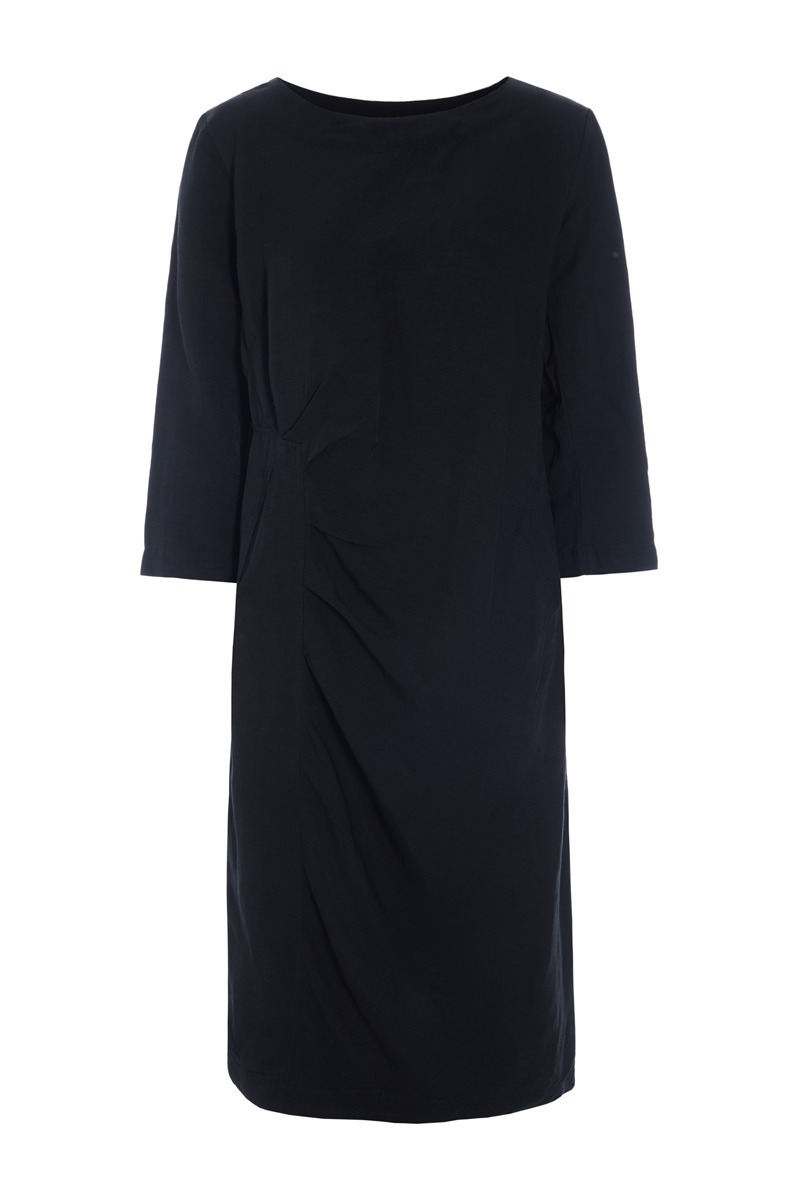 Ein fantastisch elegantes Kleid mit Falten, die auf einer Seite einen schmeichelhaften Fall bilden. Ein Detail, das das ansonsten schlichte Design des Kleides auflockert. Das Kleid ist ein zeitloses und raffiniertes Basic för Ihre Garderobe. Es lässt sich sowohl för den Alltag als auch för festliche Anlässe stylen.