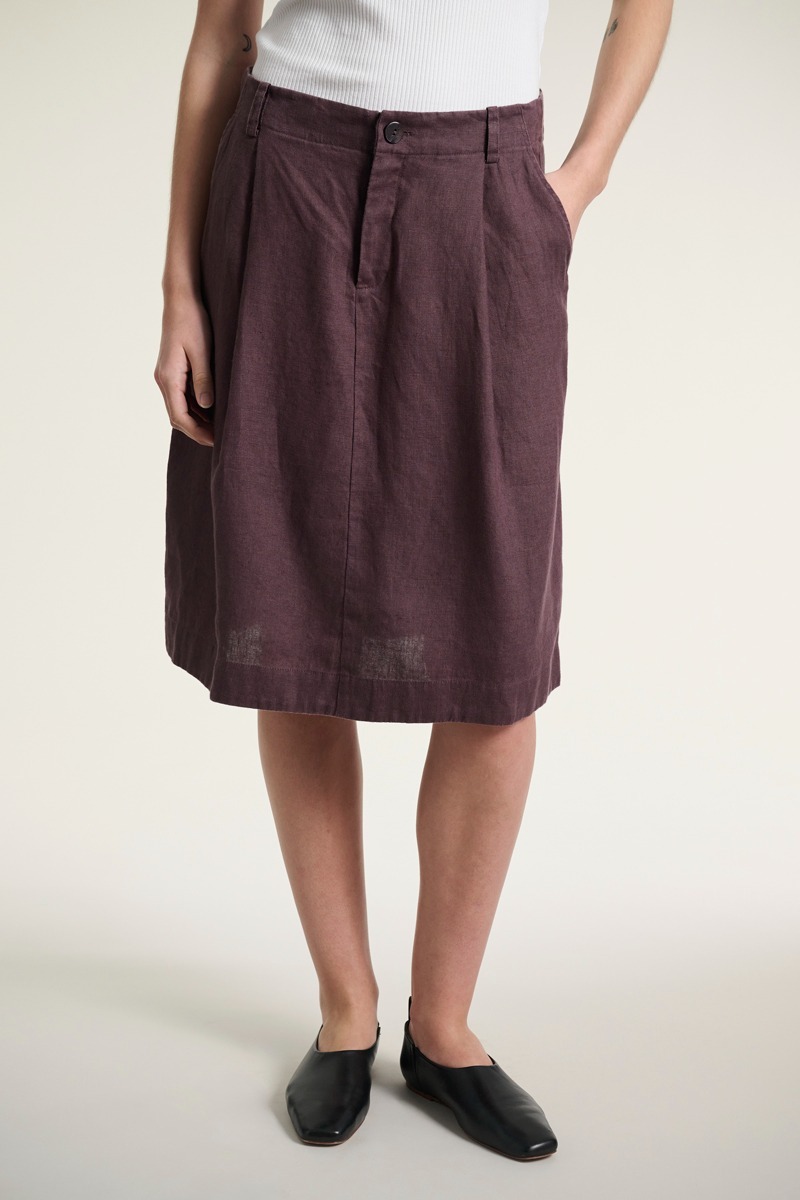 Rock aus hochwertigem Leinen mit schlichtem Schnitt, der ihn vielseitig kombinierbar macht und zu jedem Oberteil passt. Kombiniert mit der passenden Lazy-Leinenjacke entsteht ein stilvolles und elegantes Ensemble.