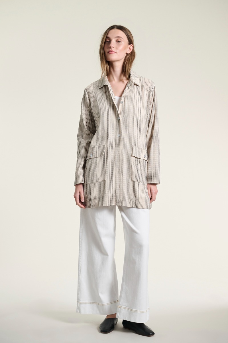 - Durchgehender Verschluss mit Perlmuttknöpfen