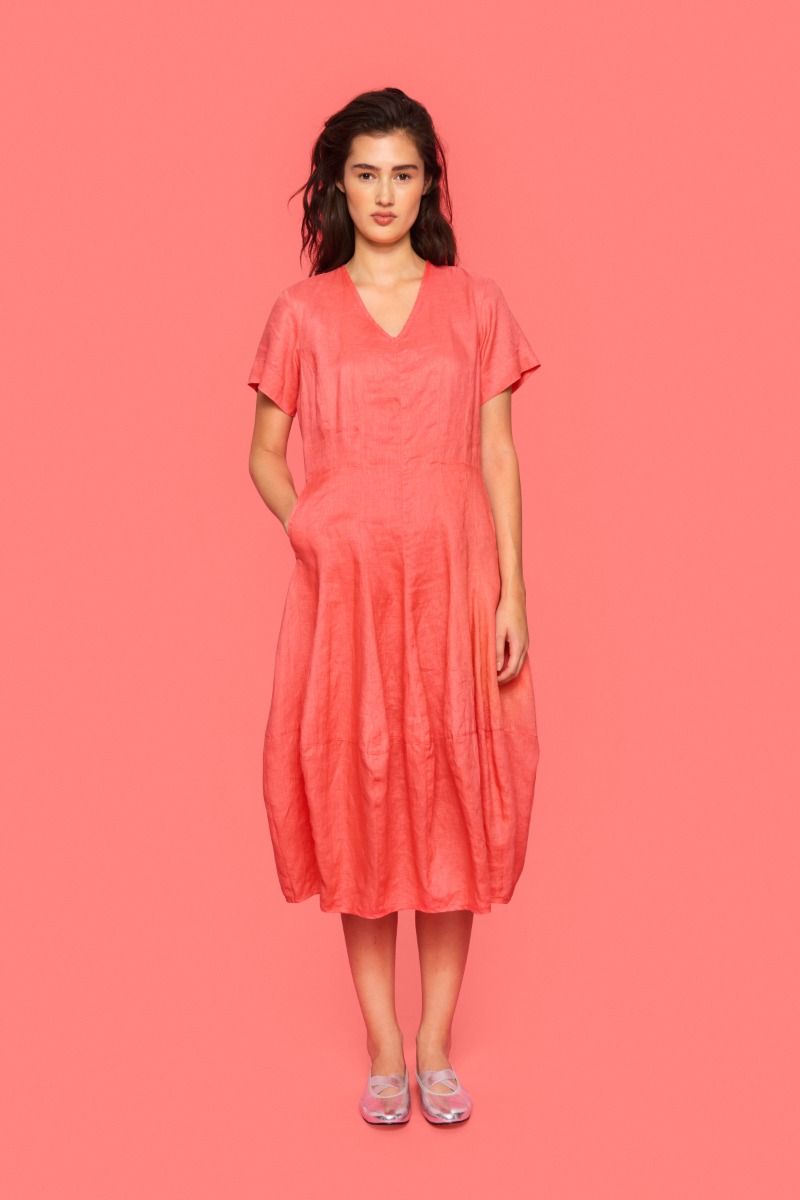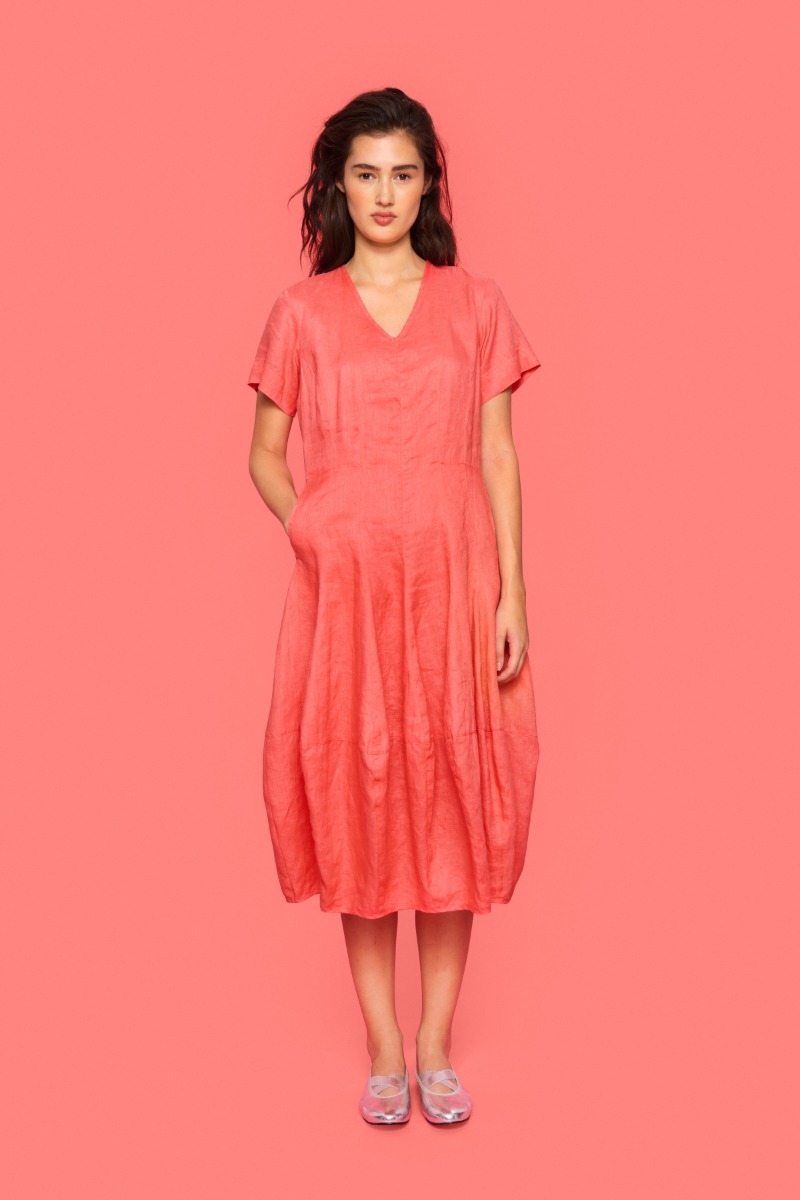 A simple and timeless dress in a lovely linen quality. The dress has vertical seams and drapes beautifully around the body. It can be styled in many different ways. Wear it with a blazer or cardigan, or wear it in all its beautiful simplicity with a pair of nice shoes. The model in the picture is 178 cm tall and is wearing size S. Full length in size S: approx. 119 cm.