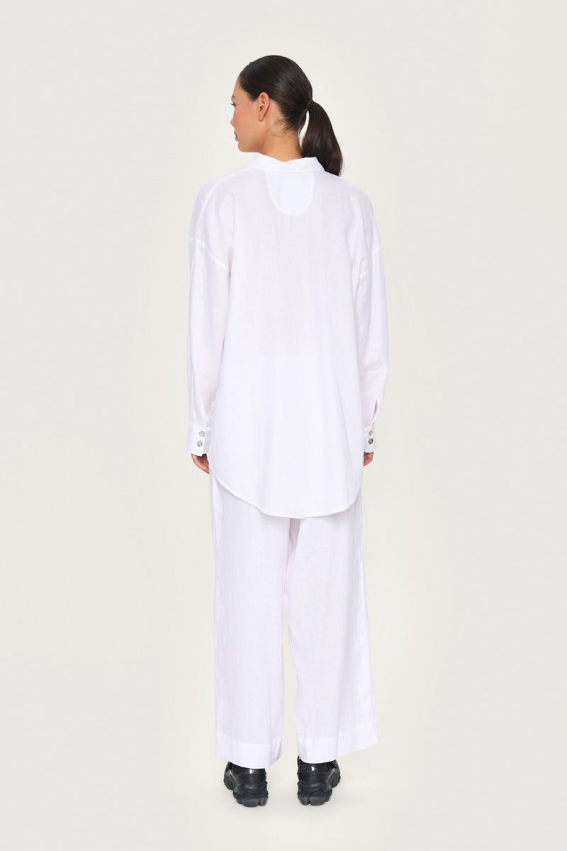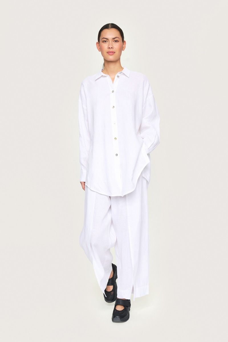The finest linen trousers with a slit and wrap-effect at the bottom of the legs. This gives them a light and airy look. These trousers go with any top. If you pair the trousers with the matching Airy linen blouse, you get a timeless and elegant set. The model in the picture is 178 cm tall and is wearing size S. Length measured from the waist in size S: approx. 97 cm.