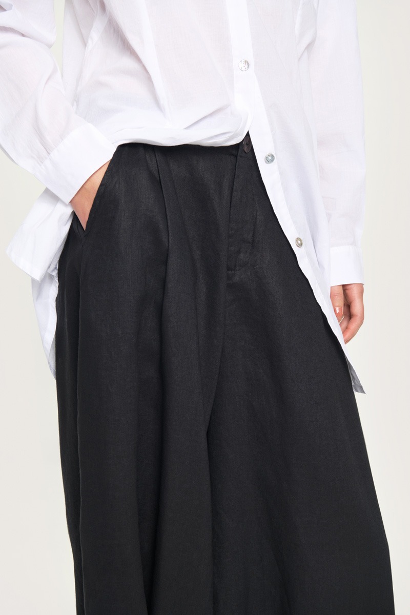 Trousers that are both relaxed and super sophisticated. They have a loose fit and are tied at the ankles, creating a beautiful, draped silhouette. These lovely trousers can be matched with, for example, a t-shirt, shirt, or sweater. If you pair them with the Airy linen jacket, you get a great set.