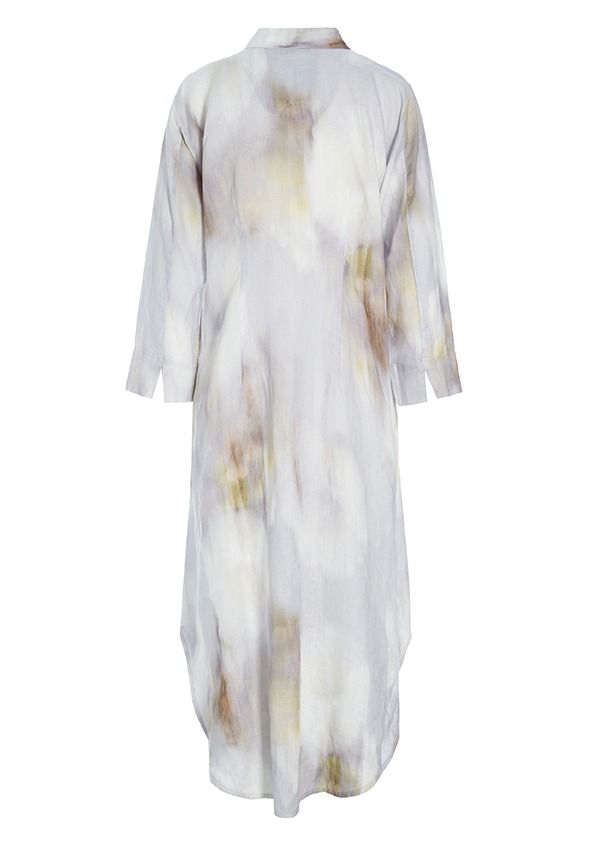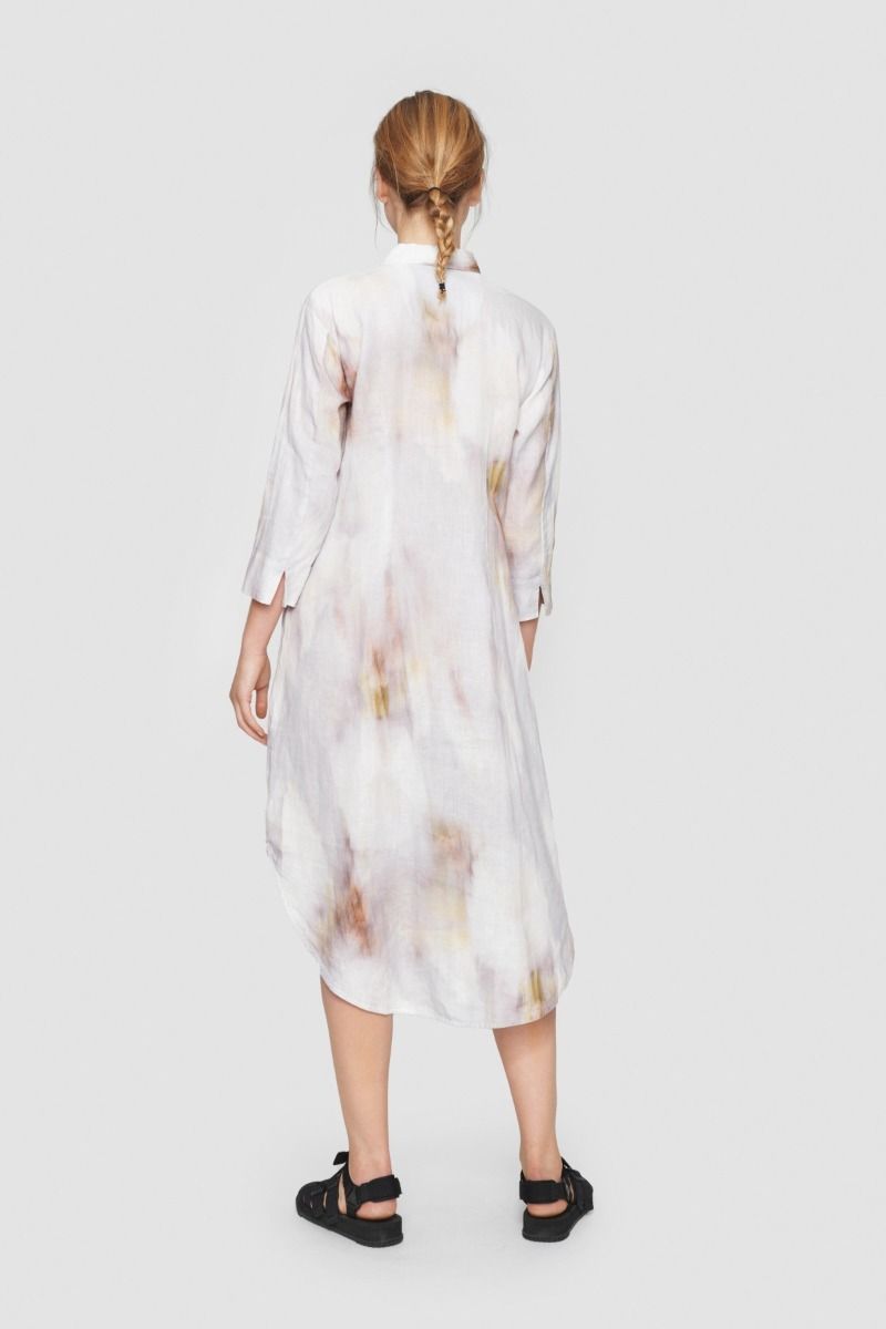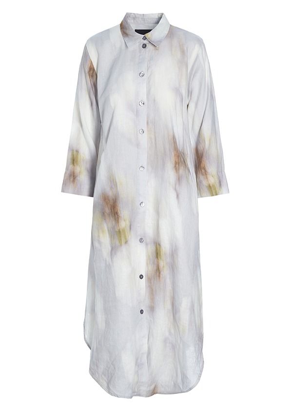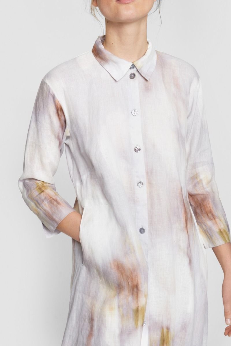 This shirt dress is made from cool linen and features a dreamy shower pattern. The simple design makes this a highly versatile dress. Wear it over a pair of jeans or wide trousers, or by itself on warm days with a pair of sandals. It's a truly versatile and classic summer piece. The model in the picture is 181 cm and wearing size S. Full length in size S, approx. 124 cm.