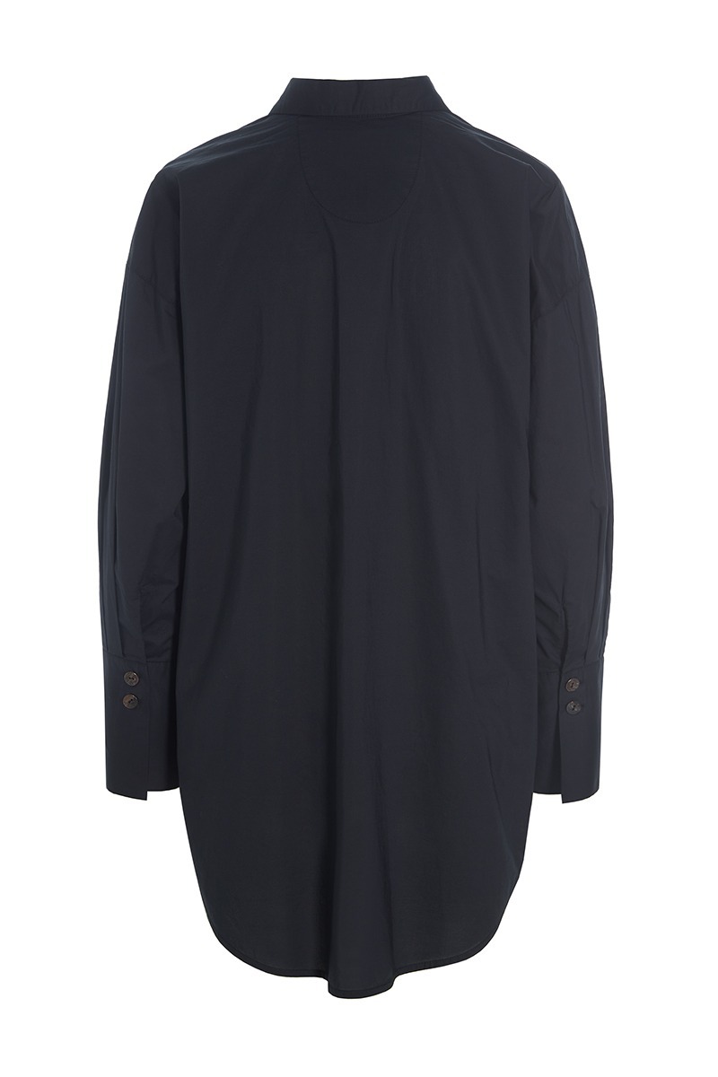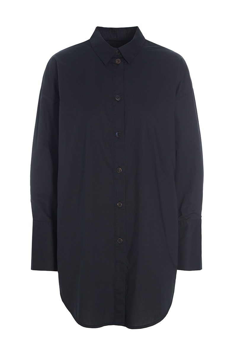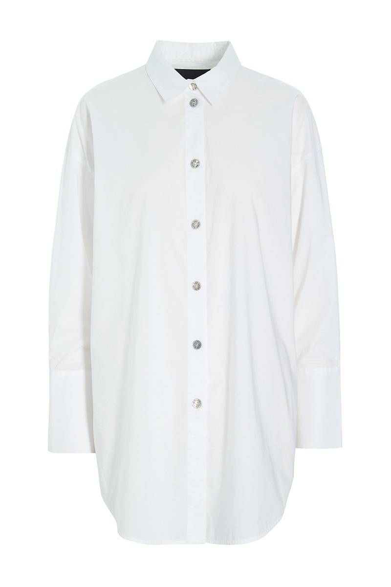 A large shirt in a lovely, organic cotton fabric. The design is classic, and the sleeves feature very wide cuffs, giving the shirt a luxurious feel. A beautiful and timeless shirt that can be paired with virtually any bottom piece.