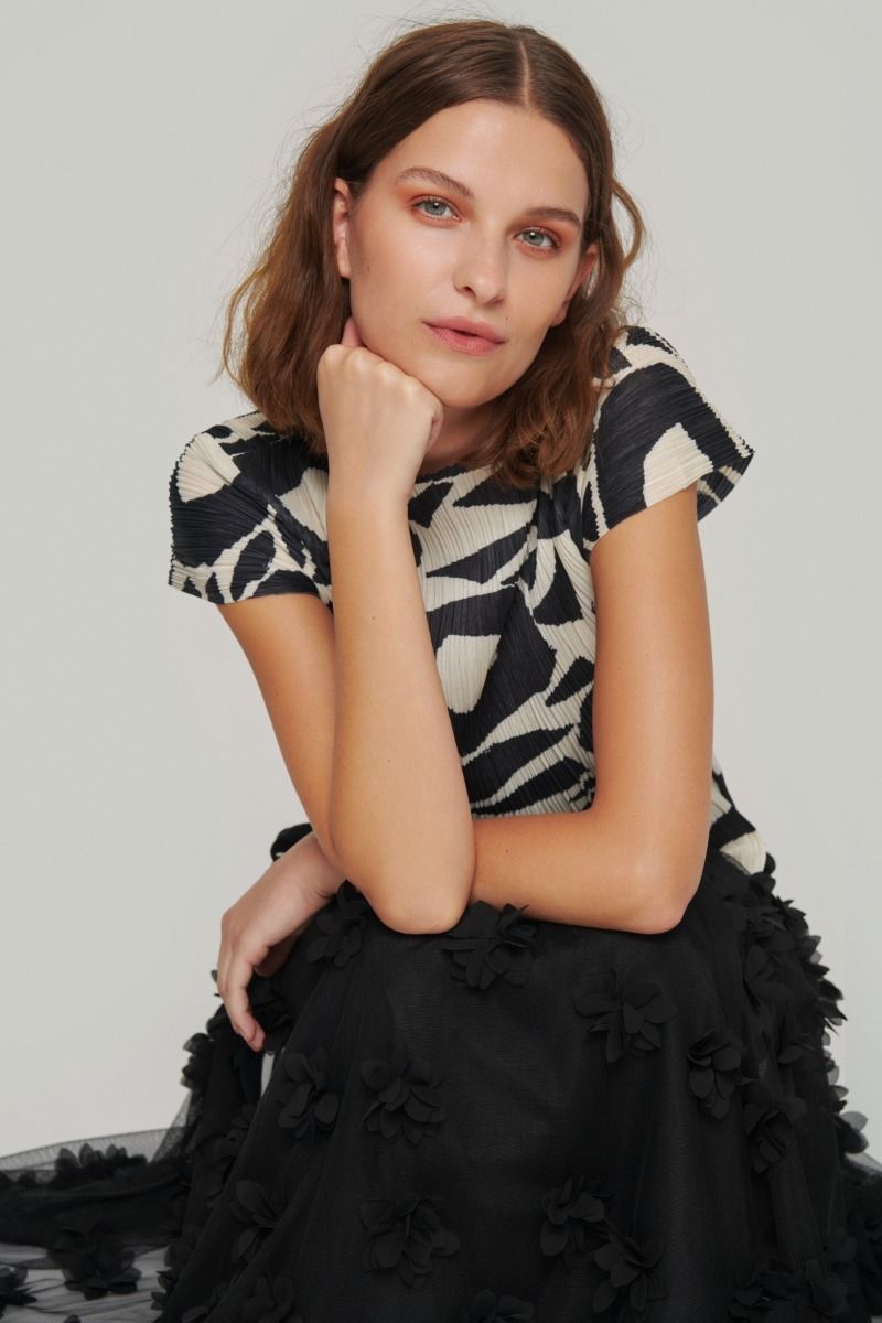 - Sheer skirt with black underskirt