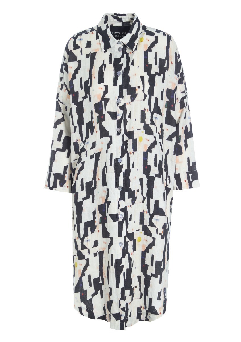 This shirt dress is made from sumptuous linen, featuring a beautiful and artistic print. Wear it over jeans or wide trousers—or by itself on warmer days, with just flat sandals or trainers. The model in the photo is 178 cm tall and wearing a size 1 Full length of approx. 108 cm in a size 1.