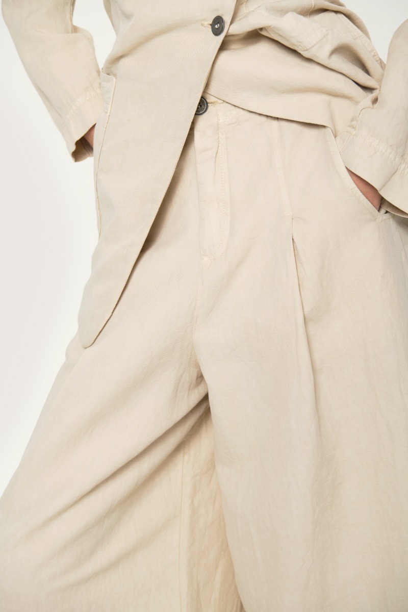 Well-fitting and classic trousers with wide legs. These trousers can be paired with any top – for instance, a t-shirt, blouse, or a crisp white shirt. If you wear the trousers with the Inaka jacket or vest, you get a great and stylish set.