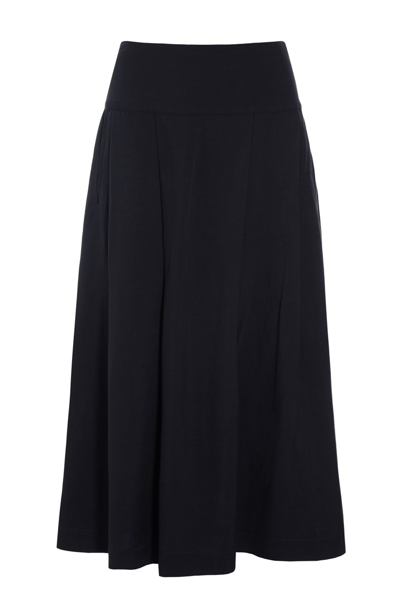 Skirt with a wonderfully flattering fit. The wide yoke combined with the pleats on the skirt create a beautiful silhouette. The skirts simple design and beautiful long lines mean it can be styled in countless ways. Pair the skirt with a T-shirt, shirt or festive top. Combine the skirt with the matching Kumamoto jacket for a timeless and elegant outfit.