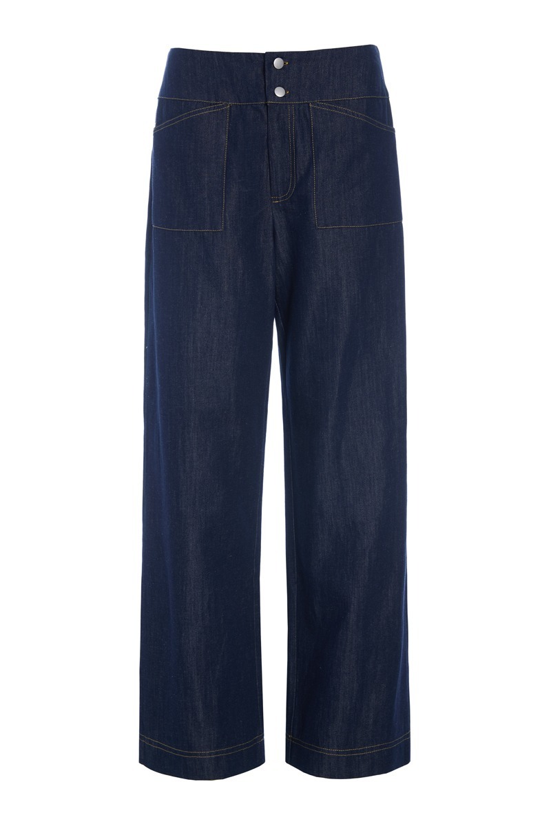 Denim trousers with an extremely flattering fit. The wide waistband and straight legs create an elegant silhouette. These trousers will upgrade any top, whether its a casual T-shirt, a smart shirt or an everyday blouse. Pair the trousers with the matching Kurai jacket or Kurai topfor a cool suit.