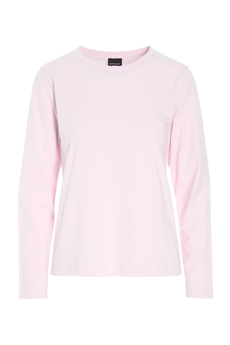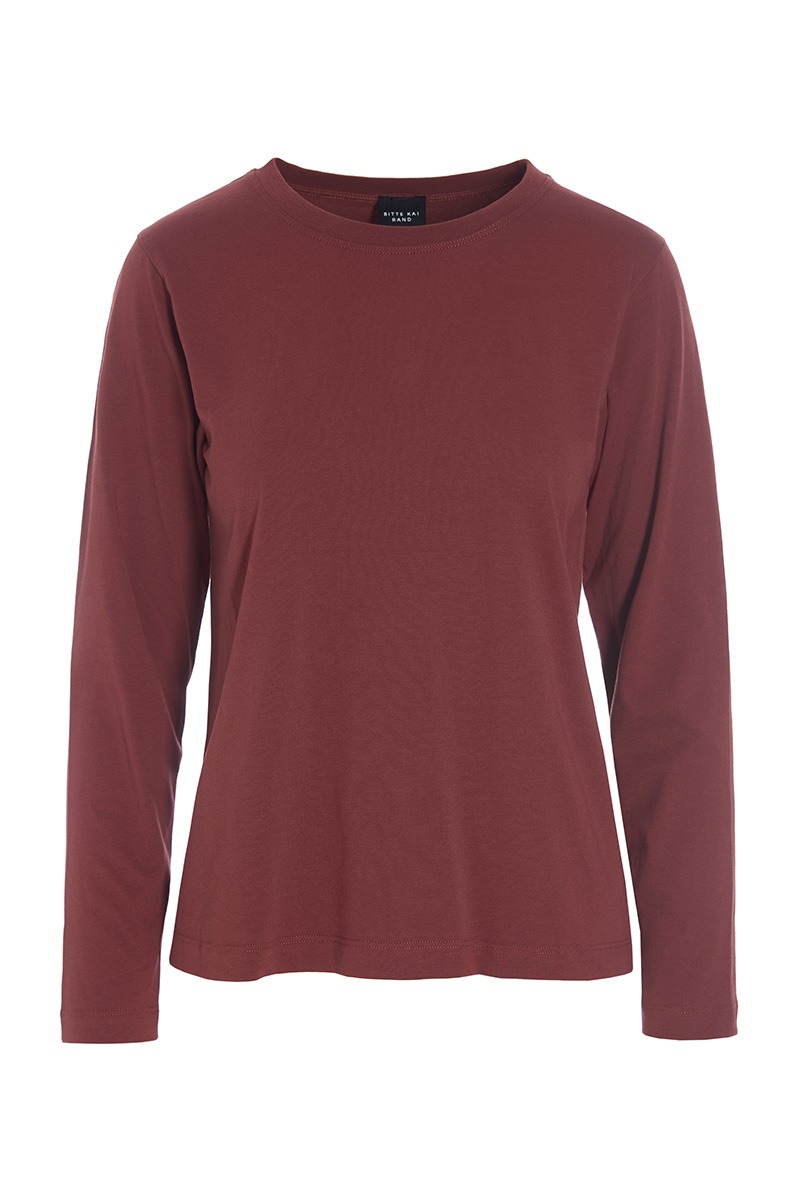 A simple and soft long-sleeved blouse. It is made from 100% organic cotton of high quality, ensuring a great fit and shape retention. The model in the picture is 180 cm tall and is wearing a size S. Full length in size S: approx. 59 cm.