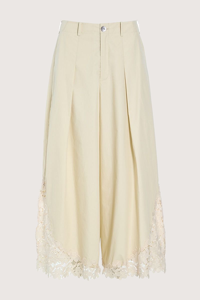 These elegant trousers are decorated with fine, slightly transparent lace pieces that give a feminine and poetic touch. A pair of trousers that will upgrade any top. If you pair them with the matching Paper Poplin jacket, you get a lovely and cohesive set.