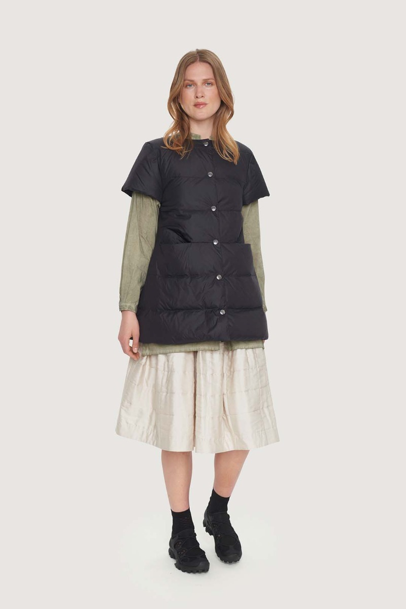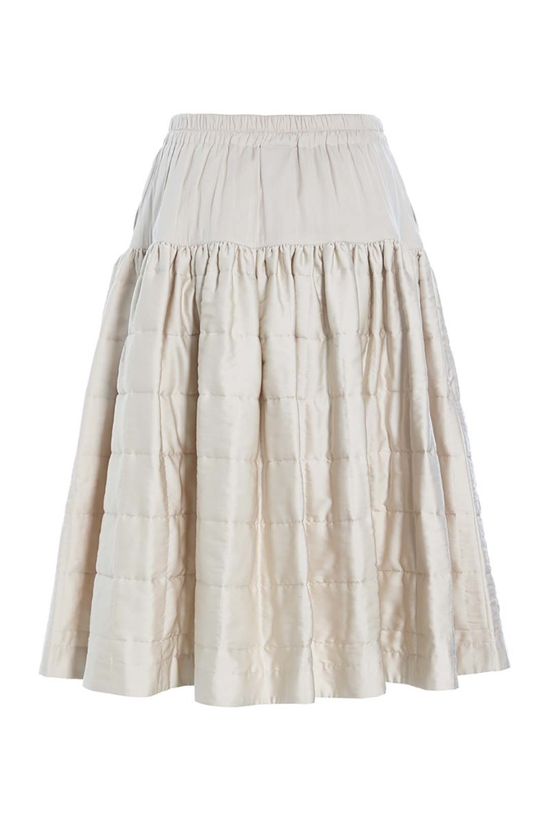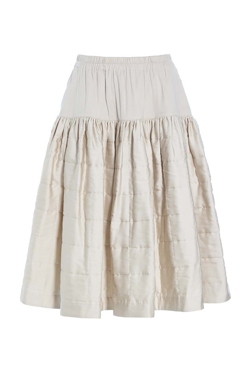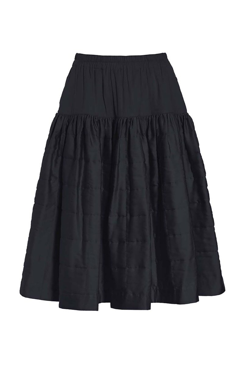 This beautiful skirt stands out in more ways than one. It's quilted and lightly padded, and the surface is a bit glossy, emphasising the festive look. It has a fairly simple cut and plenty of width. This skirt is ready to add elegance to ordinary days and festive occasions alike.