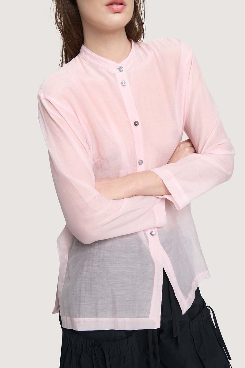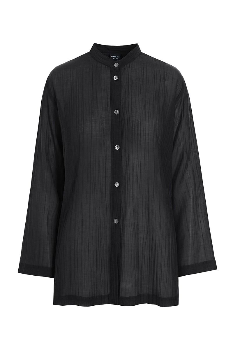 This long shirt is made from a sumptuous blend of silk and cotton. It has a ruffled, sheer look. The design is classic, and it's a perfect shirt to wear with a top underneath or a corsage top over it for a layered look. The model in the photo is 180 cm tall and wearing a size S Full length of approx. 74 cm in a size S.