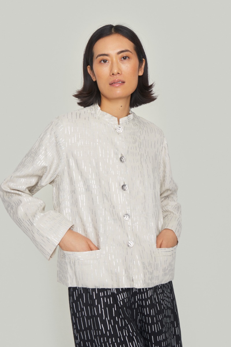 This super-simple jacket has a great fit, and the metallic pattern creates a cool, graphic look. Upgrade your everyday look by combining this jacket with a pair of jeans, or create an elegant outfit with the matching Silver Stick trousers. The model in the photo is 178 cm tall and wearing a size S Full length of approx. 59 cm in a size S.