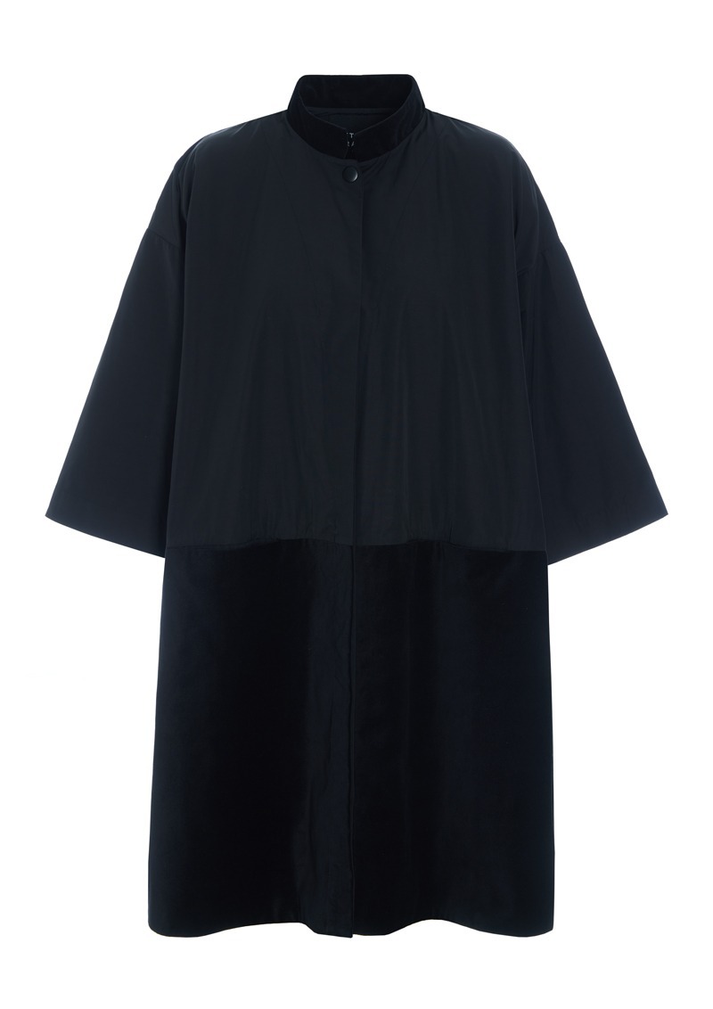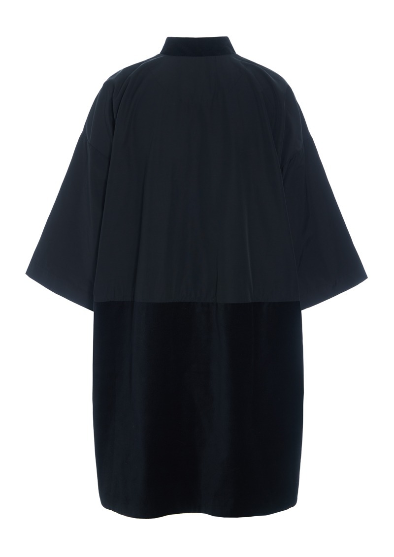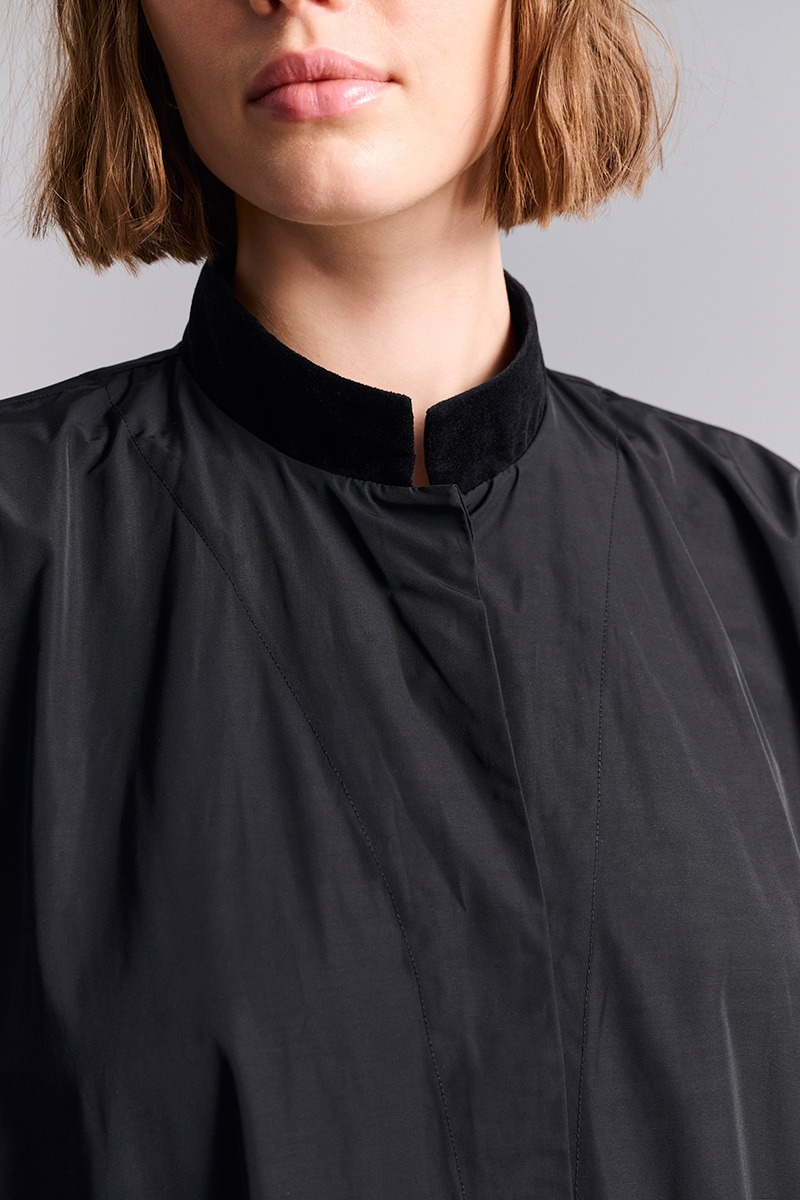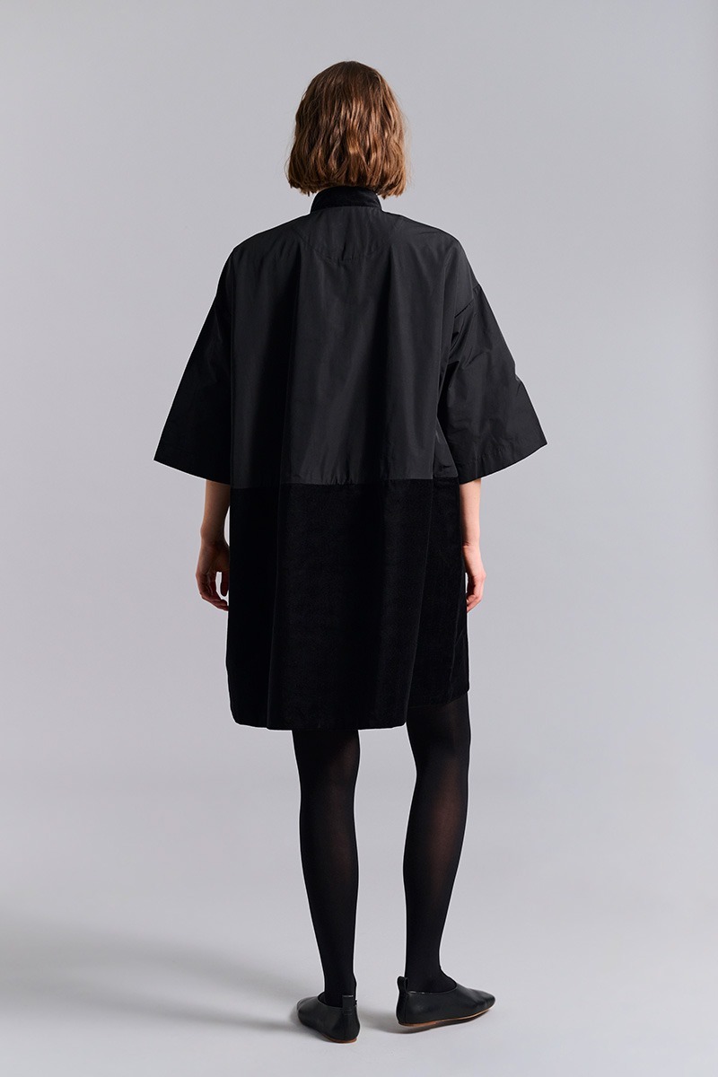 Denna kappa kombinerar en prasslande bomullskvalitet med den mjukaste velour. Det ger tillsammans med den snygga oversize-snittet ett mycket lyxigt uttryck. En tidlös klänning som kan stylas för både vardag och fest.