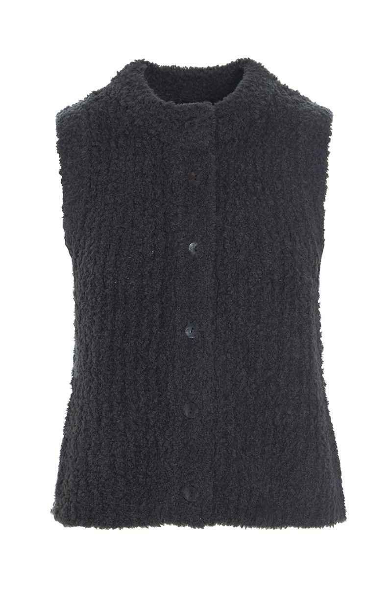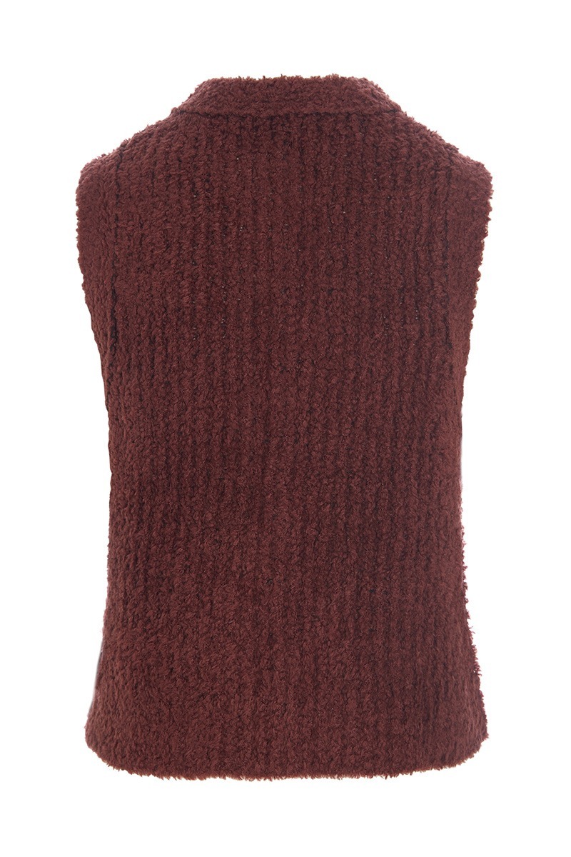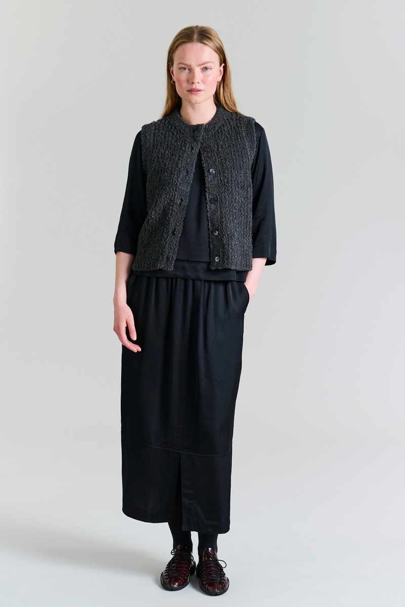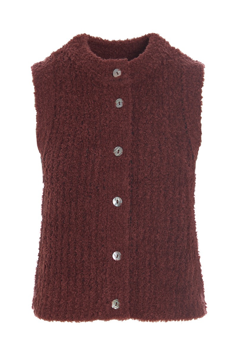 Härlig löst stickad ärmlös kofta som kan bäras som linne över till exempel en skjorta, åtsittande blus eller transparent topp. Den ärmlösa koftan är också perfekt för en lager-på-lager-look med en kavaj över eller en klänning under. Du kan också bära blusen med bara ärmar och kjol för en middag på stan. Möjligheterna är många.