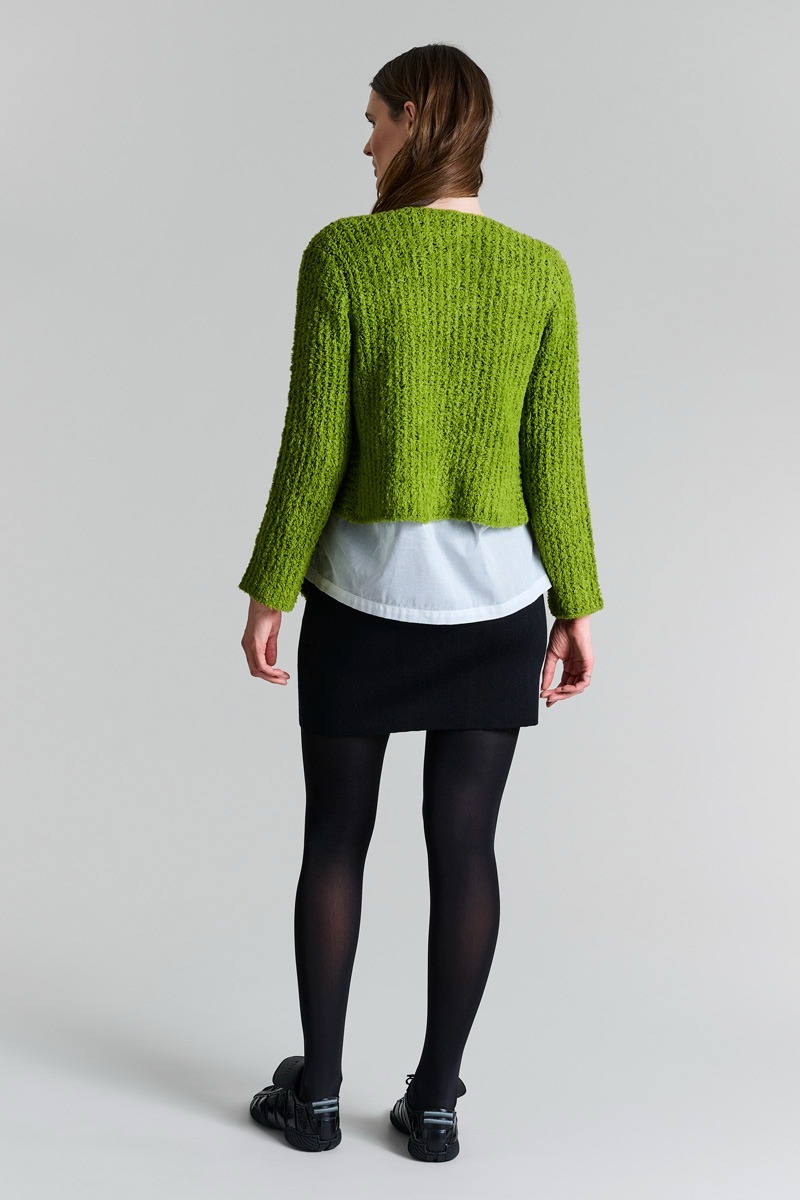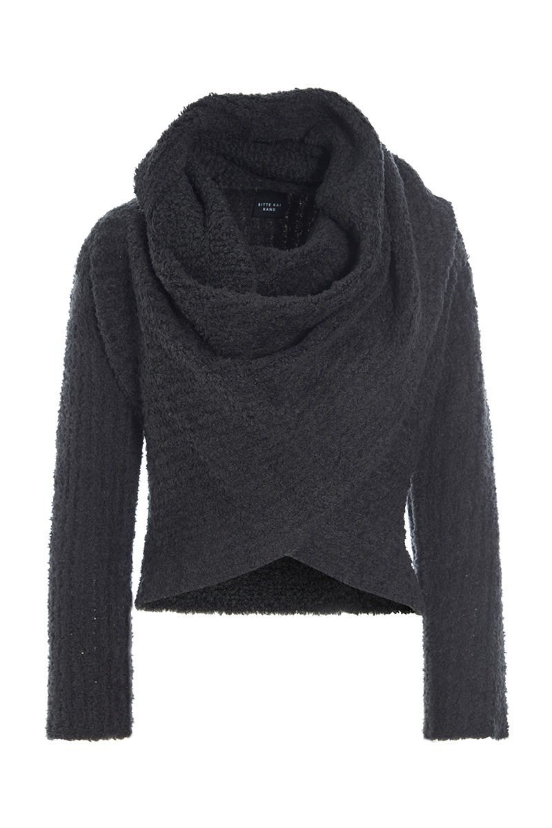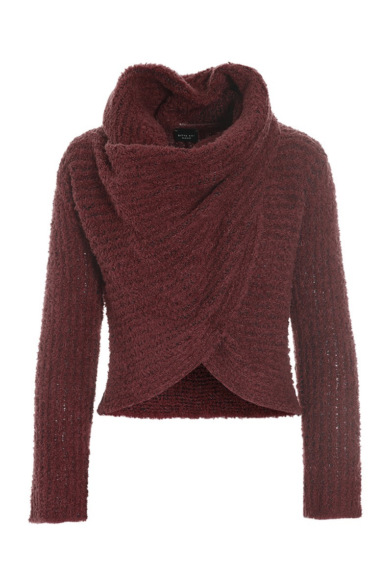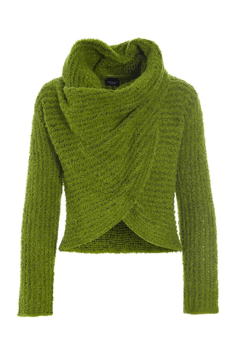 En mycket speciell tröja vars framsida och krage är lindade runt kroppen som en halsduk. Det ger en vacker draperad effekt och gör blusen till ett unikt vackert tillskott i garderoben. Tröjan kommer att uppgradera vilken nederdel som helst och göra stilen personlig och bekväm.