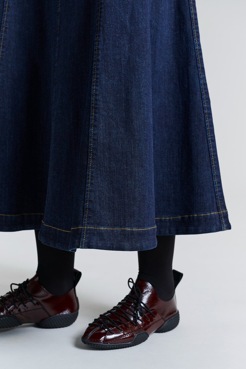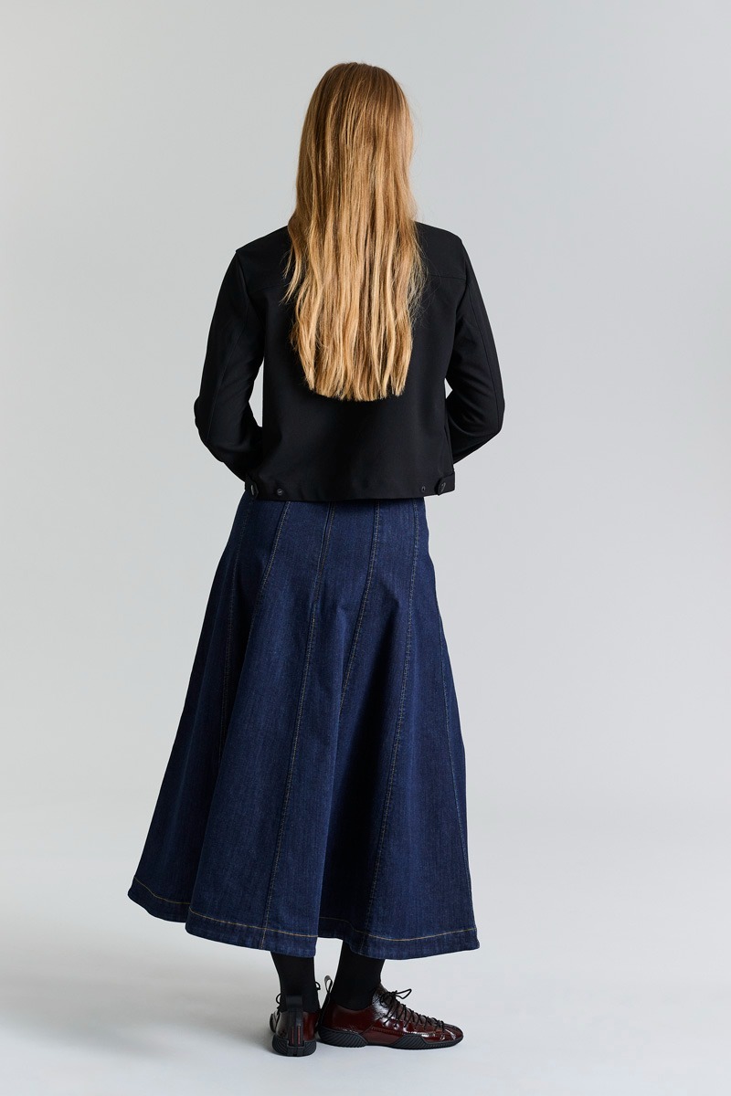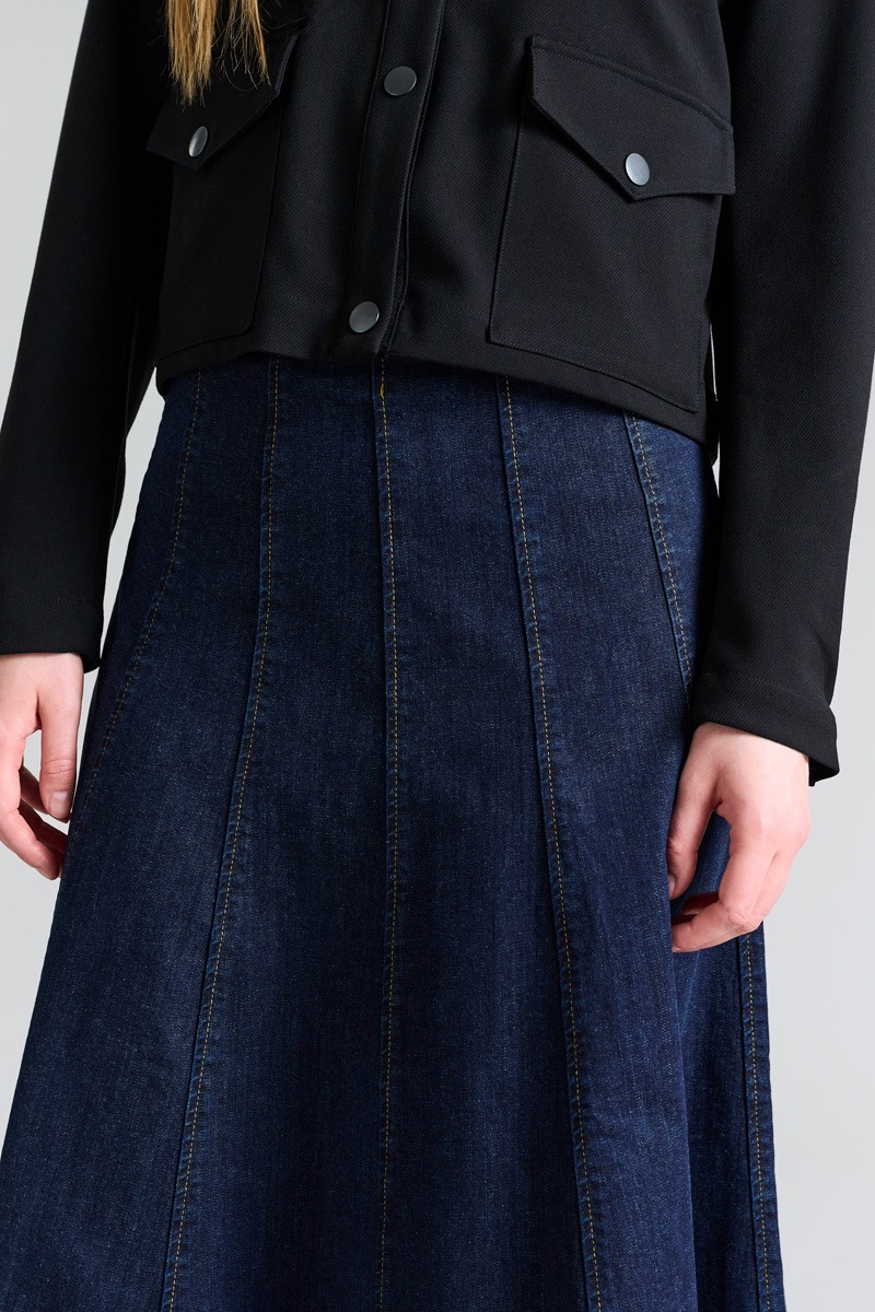 Maxilång kjol med en mycket smickrande skärning som skapar en vacker silhuett. Det finns stretch i tyget vilket ger bra rörelse. Oavsett om du bär kjolen med en skjorta, T-shirt, tröja eller kavaj, ger den stilen en feminin touch.