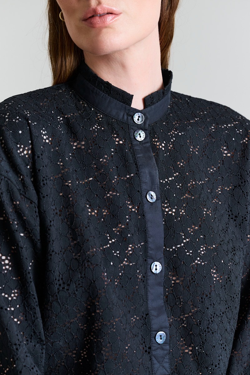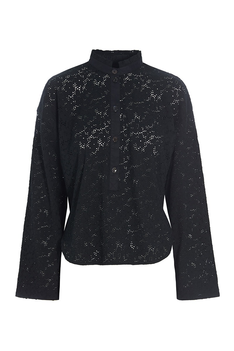 Vacker skjorta i ett härligt, tjockt spetstyg. Blusen har en fin liten krage och en enkel skärning. Den kommer att uppgradera vilket par vardagsbyxor som helst, och till fest kommer den att se snygg ut med en vacker kjol.