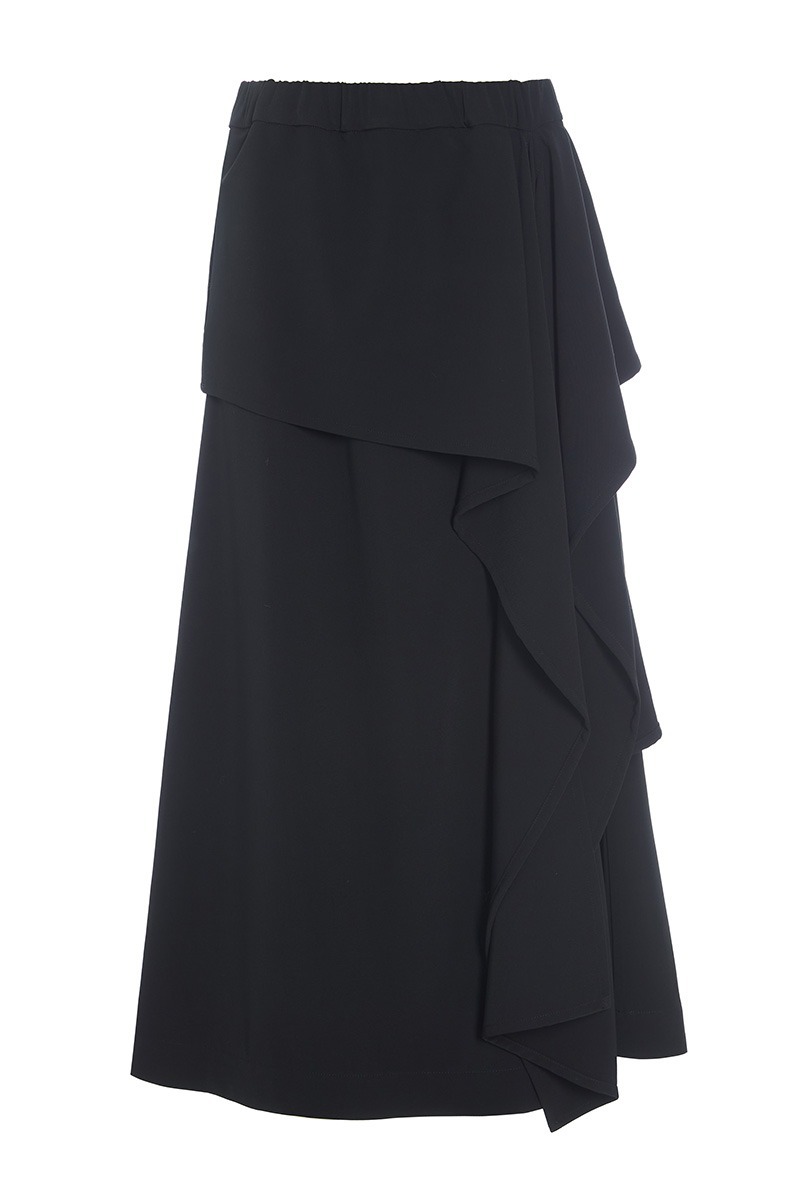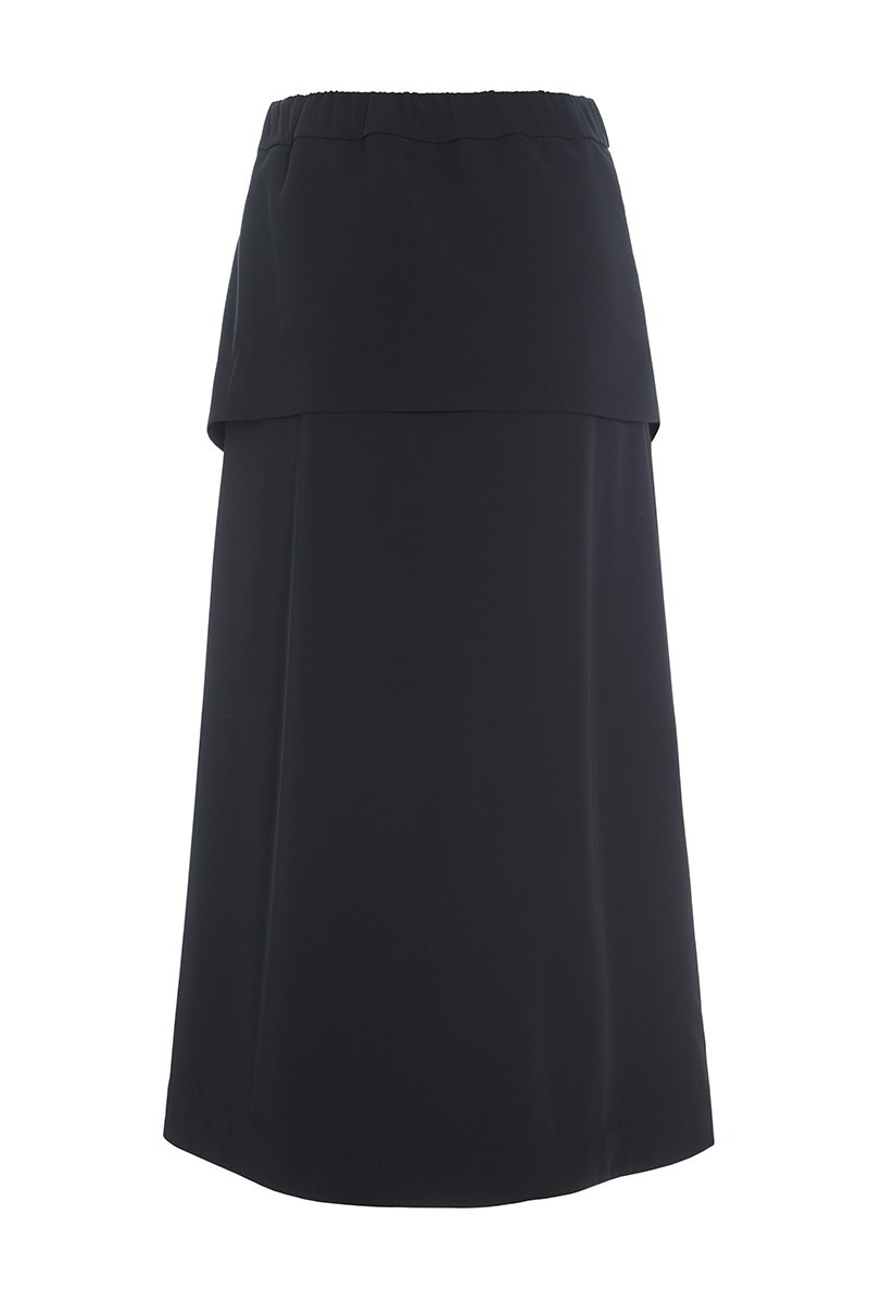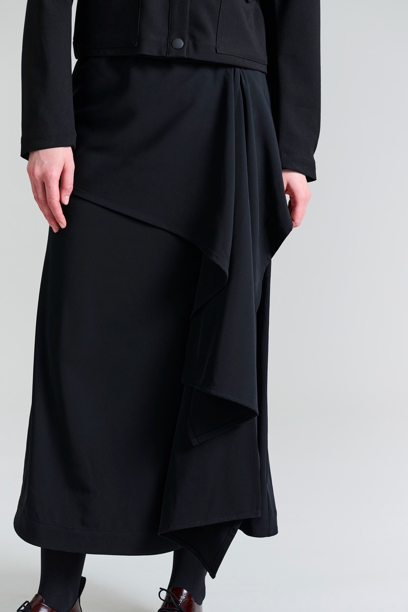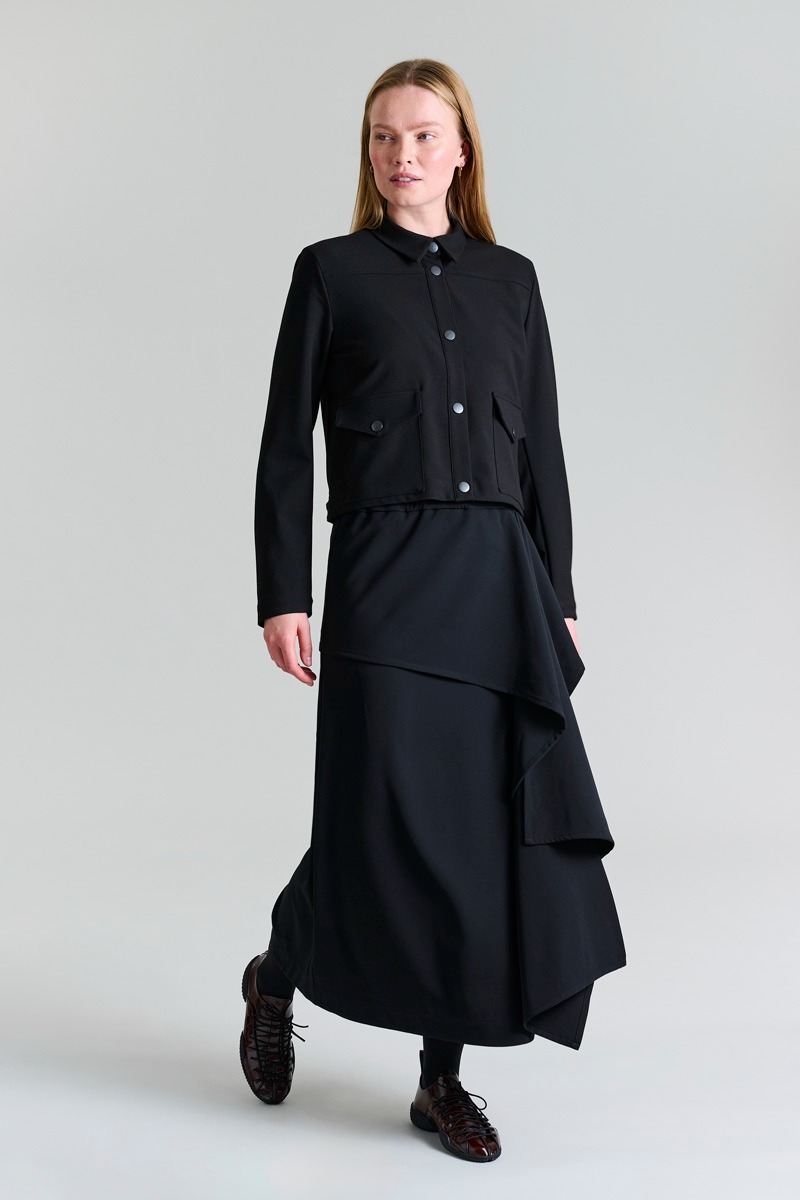 Lång kjol med en kort kjol upptill och en volang som nonchigt faller ner framtill. Mycket elegant design. En kjol som kommer att uppgradera vilken topp som helst. Om du kombinerar kjolen med den matchande Ryoko-jackan får du ett riktigt fint set.