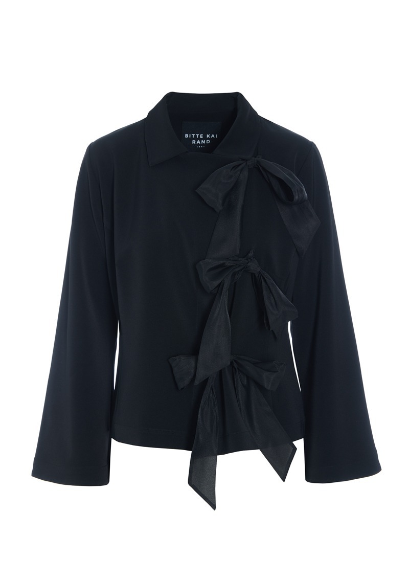 Fin jacka som stängs med stora rosetter, vilket gör den mycket elegant. Jackan kommer att uppgradera vilken enkel klänning som helst, och den kommer att ge en feminin touch till ett par byxor eller en kjol. Ett snyggt och alltid användbart tillskott till garderoben.