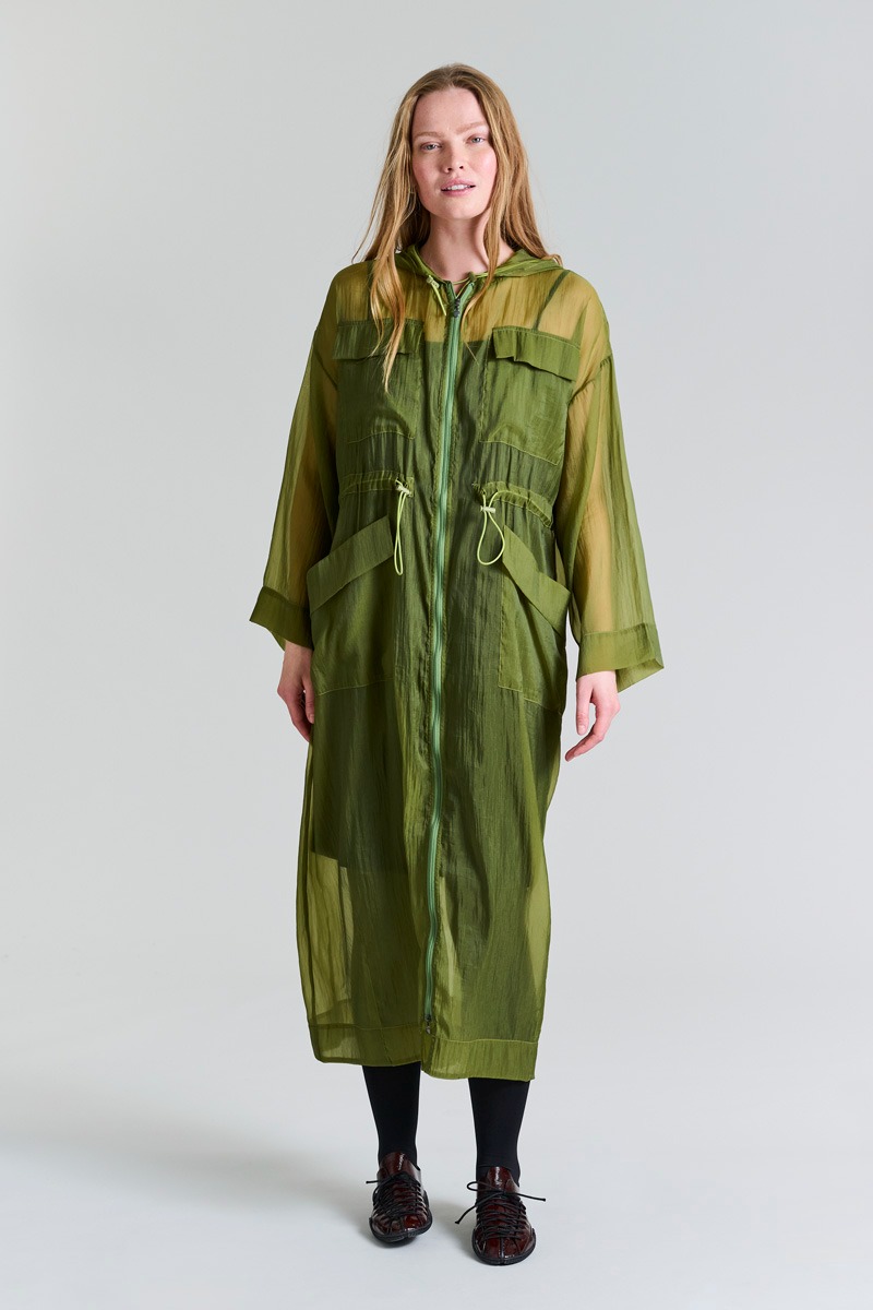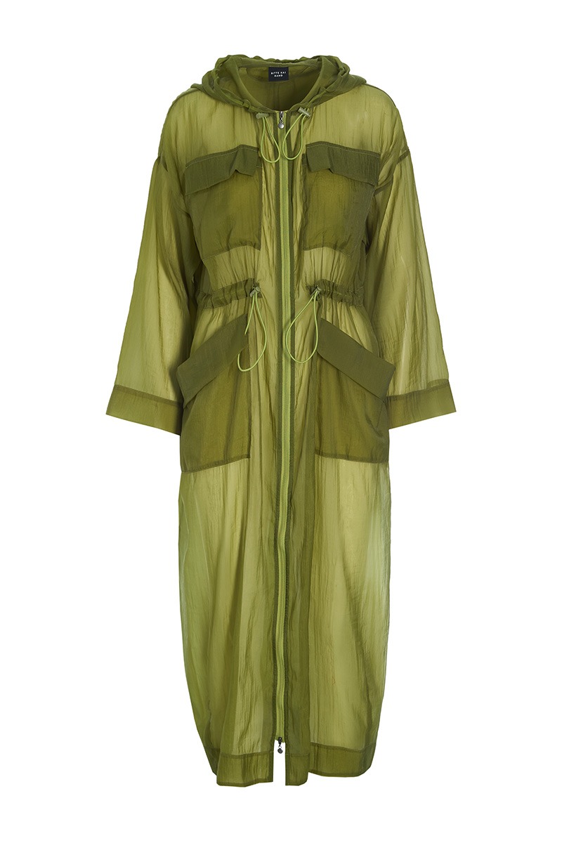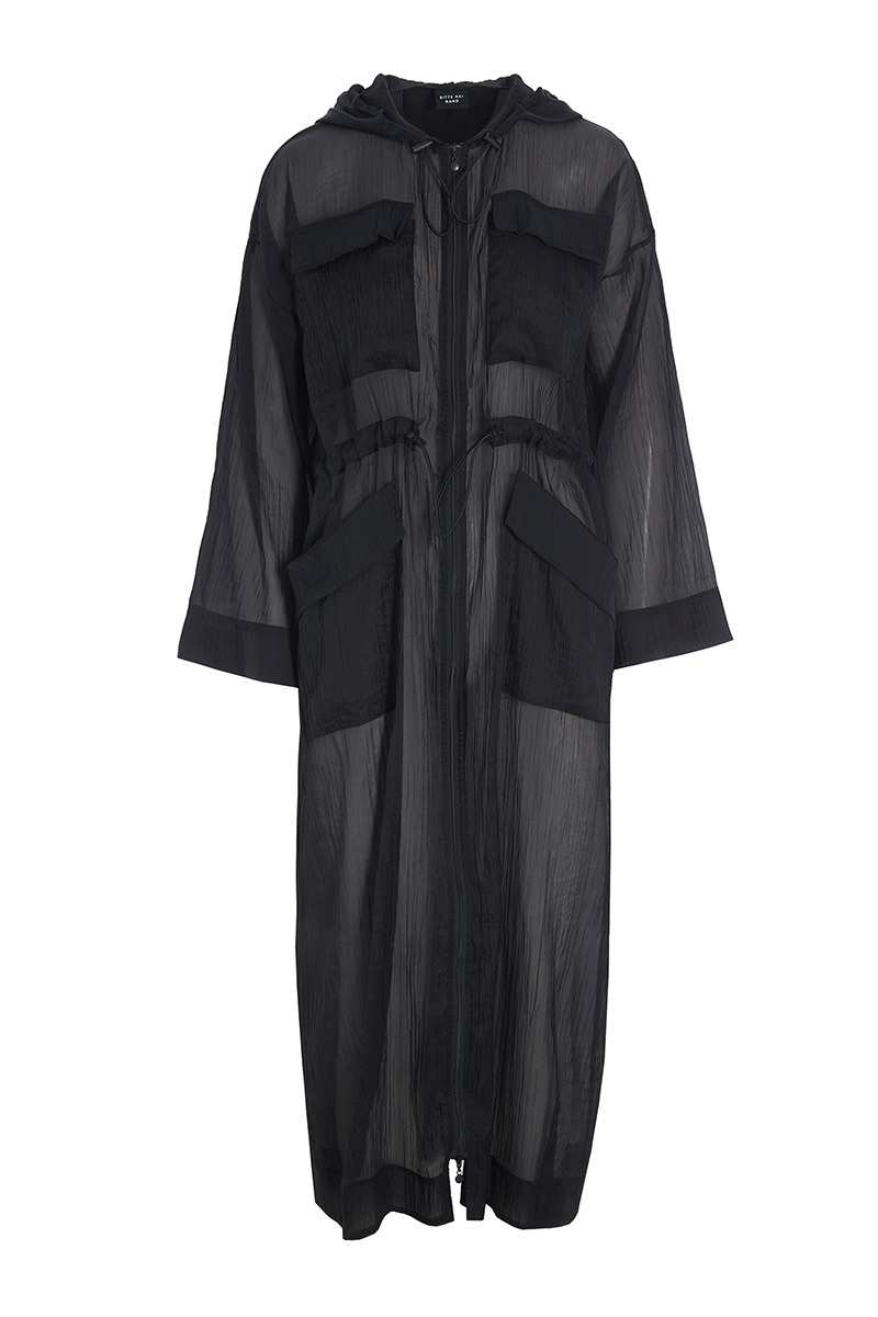- Elastiska snören med justering i huva och midja