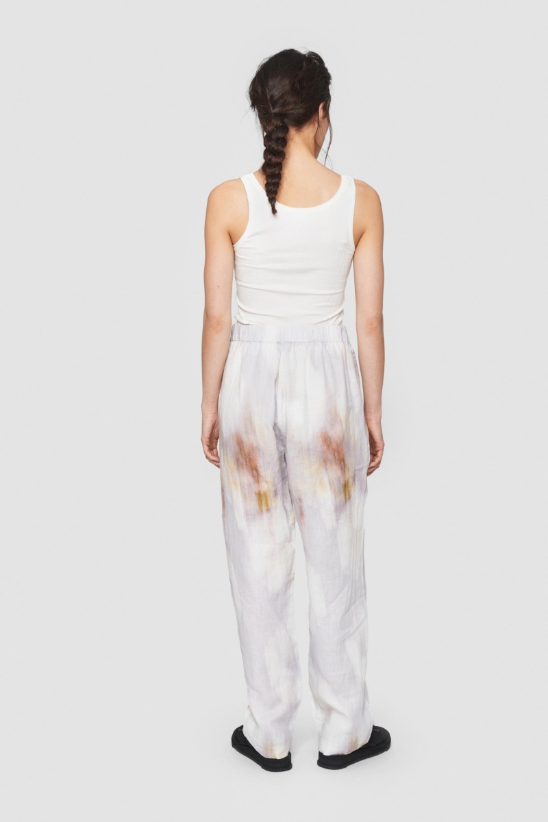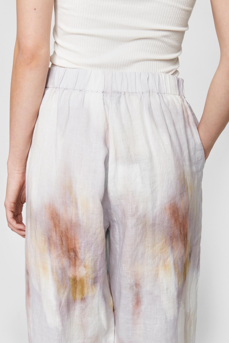 Trousers with a dreamy shower pattern. The elastic waistband and relaxed fit create the perfect look and feel. Wear them with a sharp white dress shirt or T-shirt, or create a summery outfit with the matching Blurry Bloom shirt.