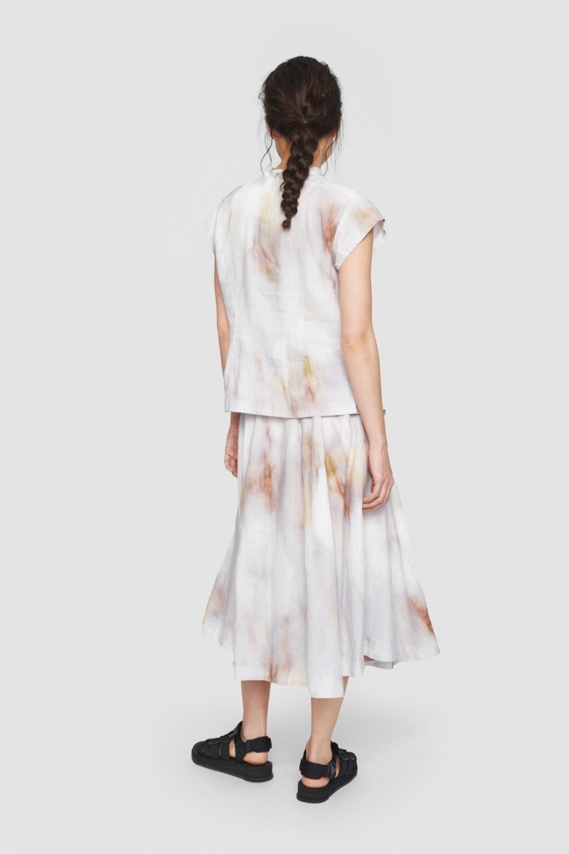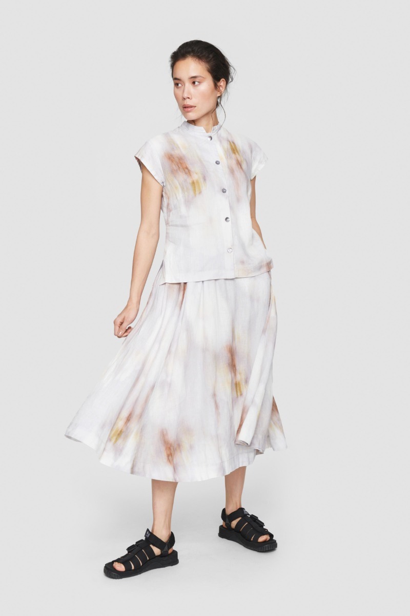 A short-sleeve shirt with a dreamy shower pattern. This shirt is perfect to add a touch of summer to your look. Wear it with a pair of shorts on warmer days, or put together an outfit with the matching Blurry Bloom trousers or skirt.