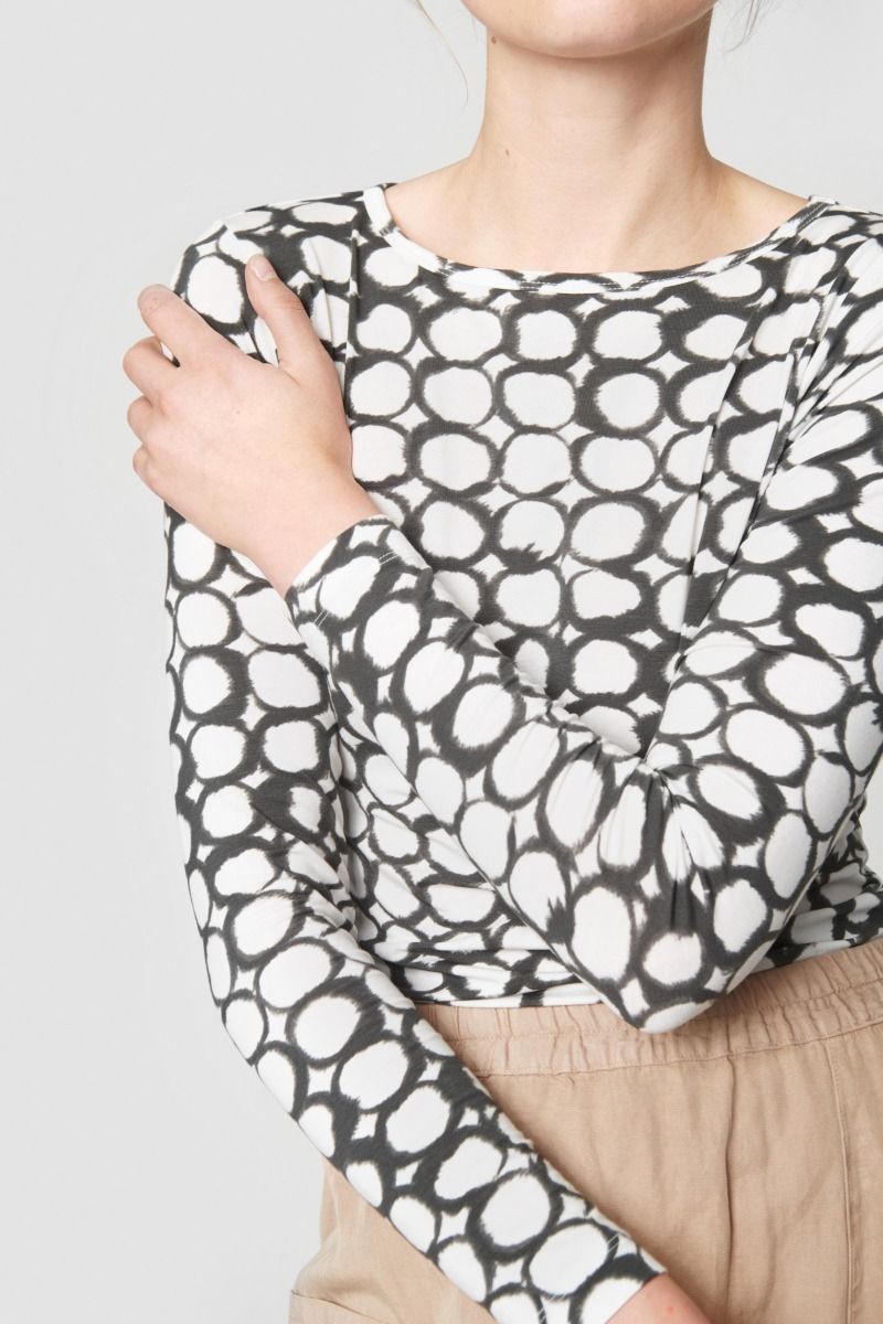 This blouse is made from the most luxuriously soft jersey fabric. The graphic pattern creates a unique look. Wear it under an open shirt and complete the outfit with classic trousers or shorts. You can also wear it under a light dress on cooler days.