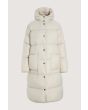 Long coat made with soft, fluffy down. This coat has a full hood that snugly wraps around the head. A luxurious interpretation of the down coat, and a truly comfortable way to keep warm when the weather gets cold.