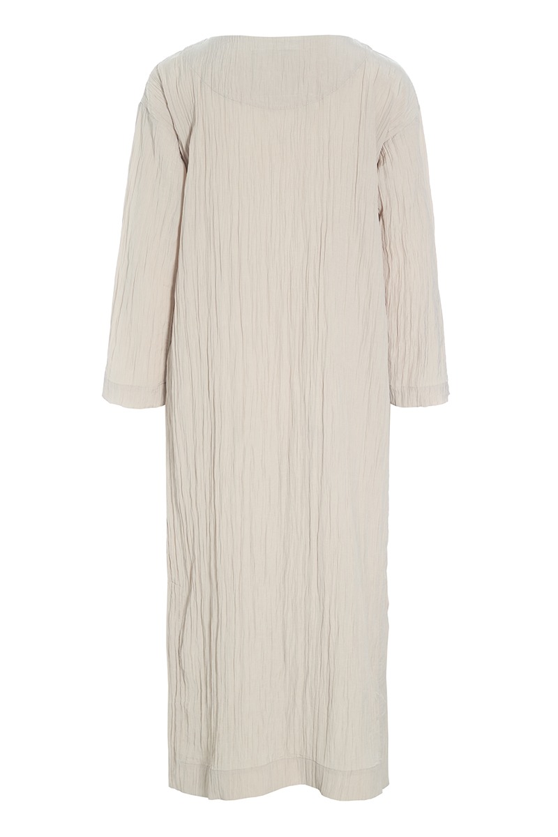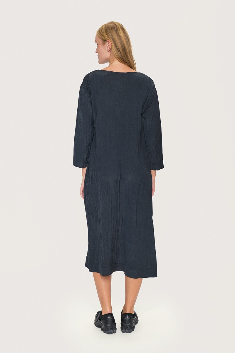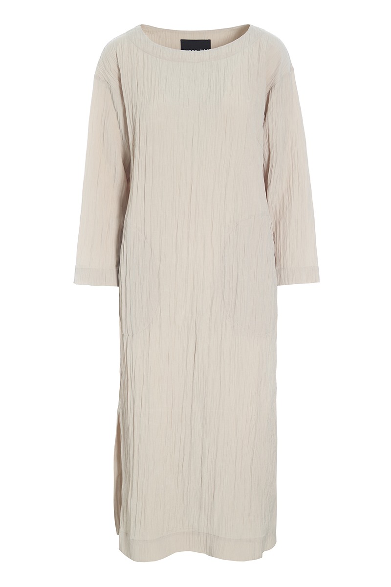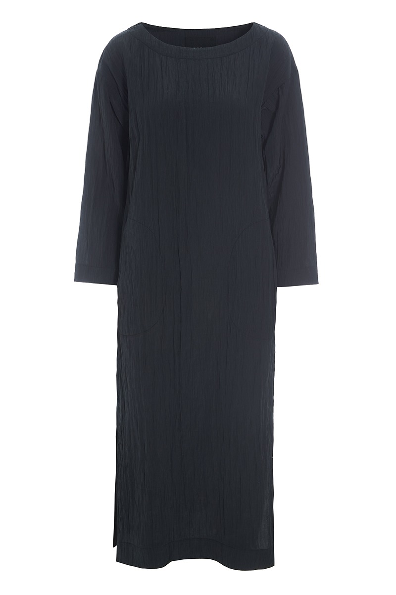 A dress with a minimalist design and a lightly crinkled texture. It has a great fit and is a versatile wardrobe essential that can be styled in many ways – with a blazer on top, layered with a turtleneck, or simply with a pair of chic shoes.