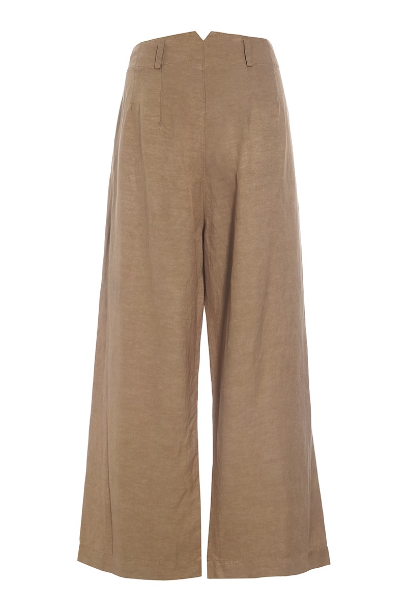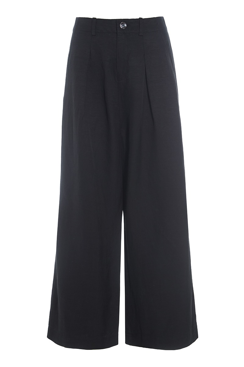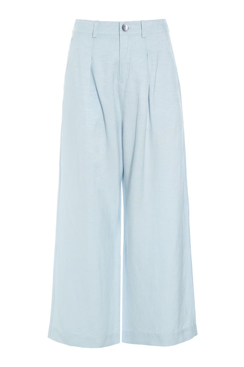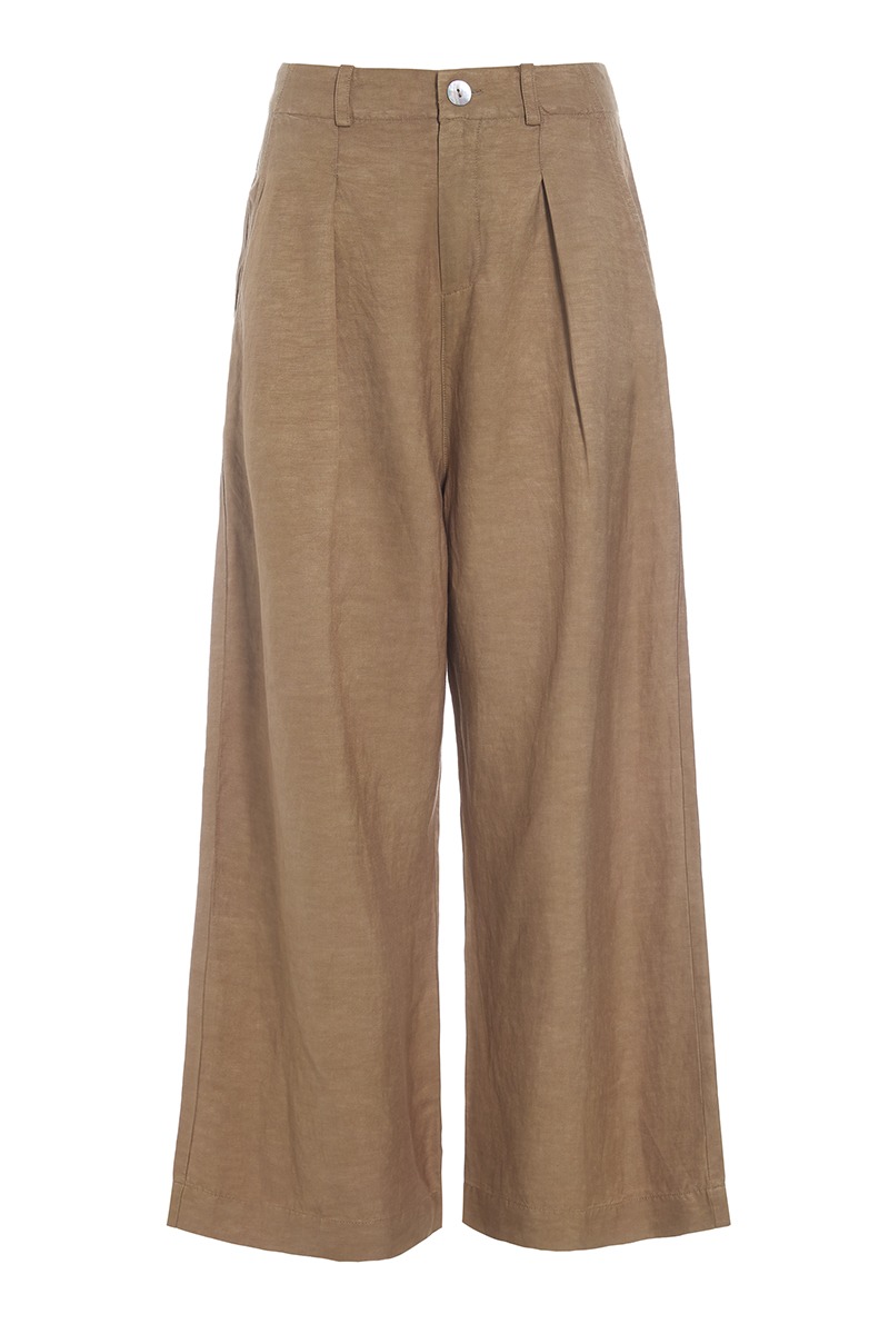- High-waisted with front pleats
