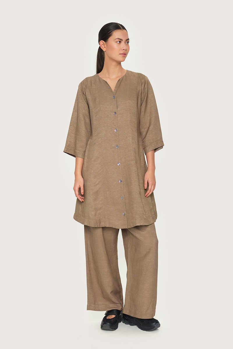 Linen is a natural fibre. The flax plant, from which linen is made, requires minimal water and fertiliser. Flax is a hardy plant that also resists insects, wind, and harsh weather. Linen is obtained from the stalks of the plant. A durable material, linen is admired for its cleanness, its sheen, and its beautiful texture, which is slightly uneven. In the summer, linen feels cool, fresh, and light; in the winter, it feels warm against the skin. Linen's many benefits make it ideal for clothing year round.