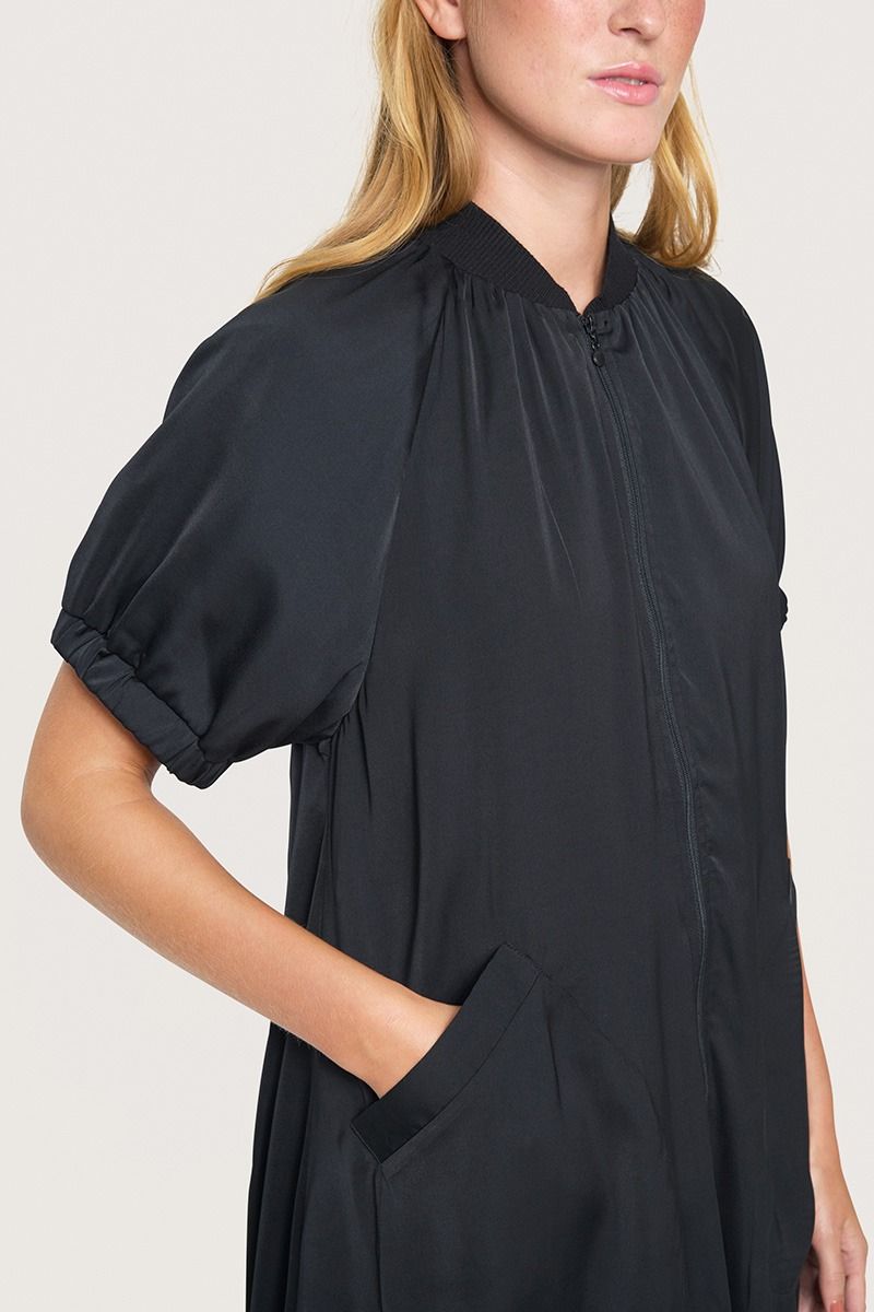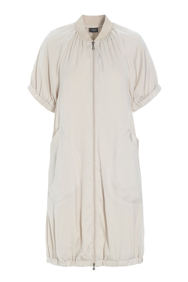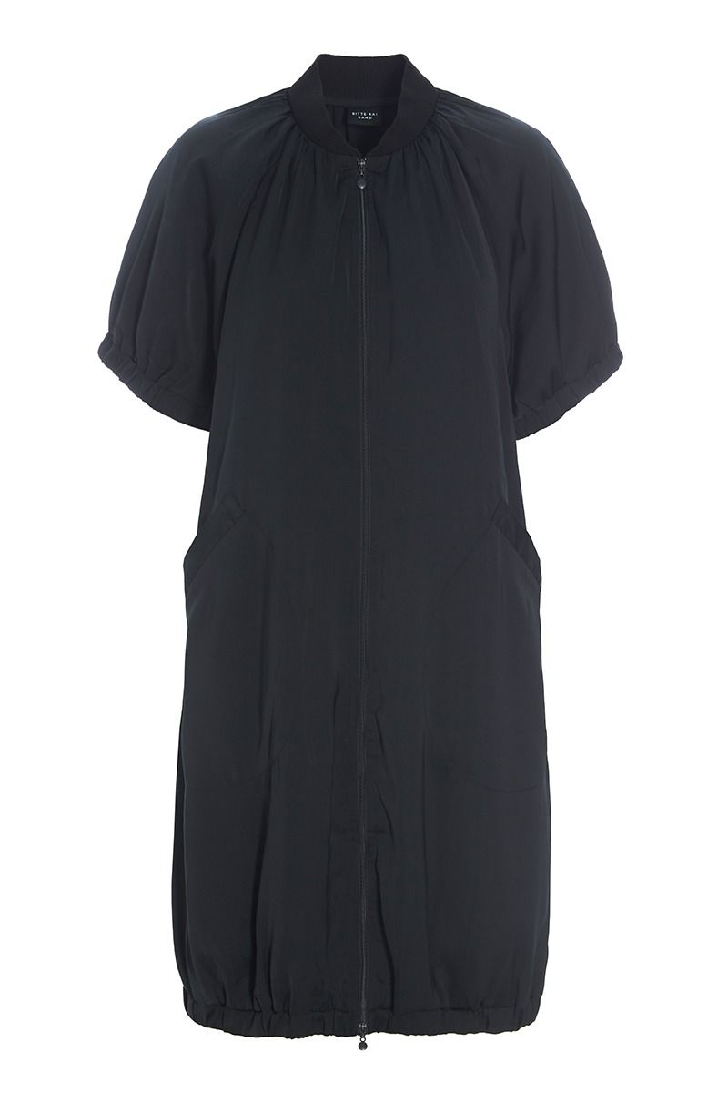 A sporty bomber jacket-inspired dress. The elastic detailing at the hem and sleeves creates a stylish and voluminous look. Wear it alone with shoes that match your mood, or layer it over a turtleneck or shirt on cooler days.