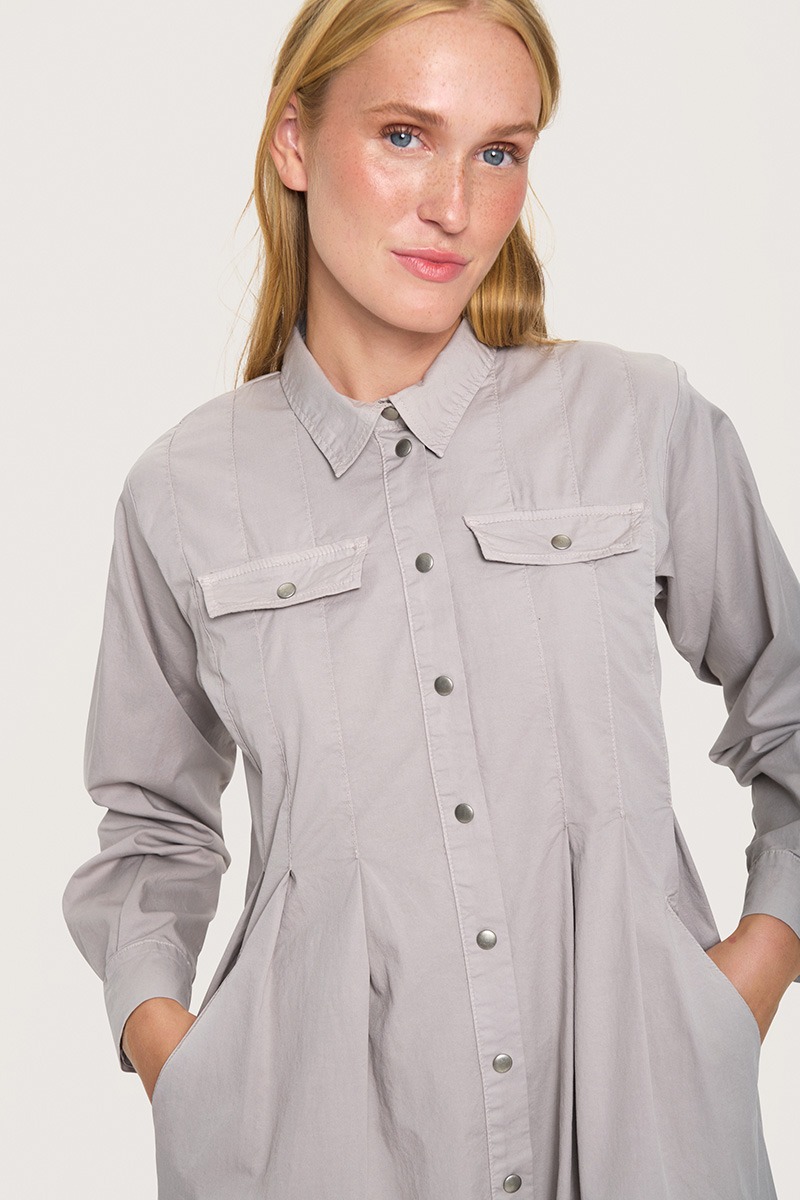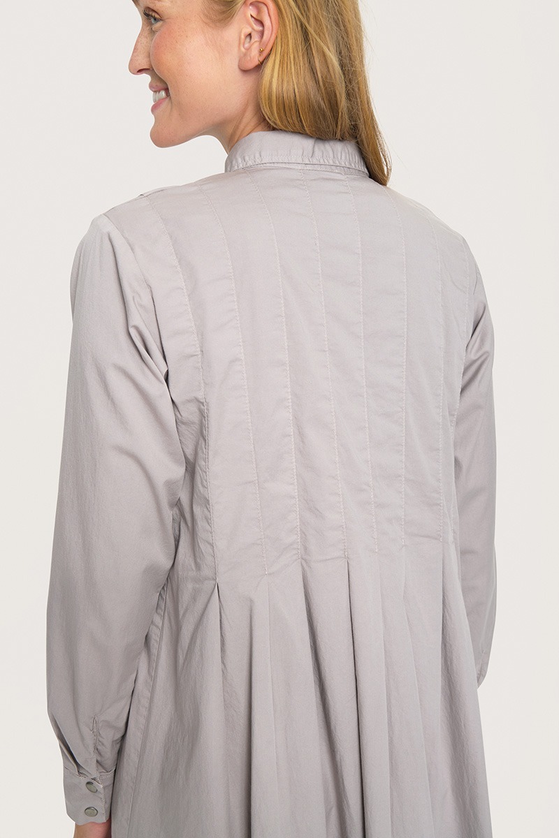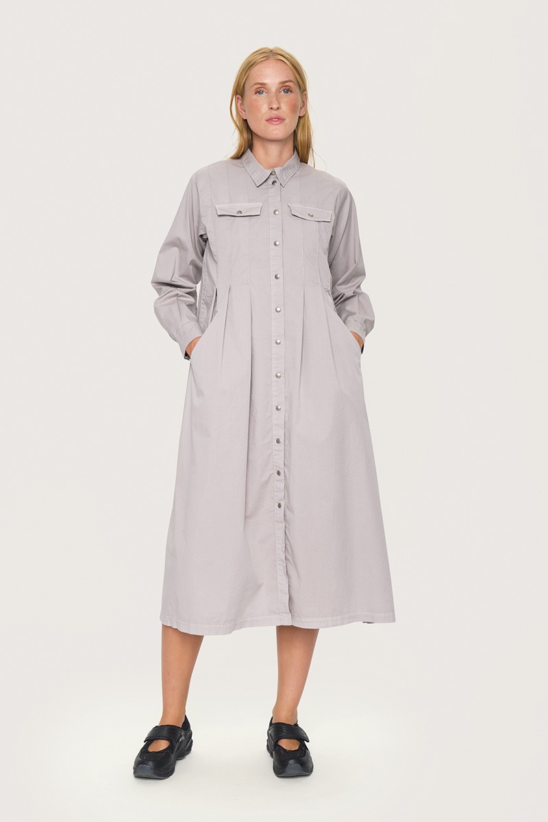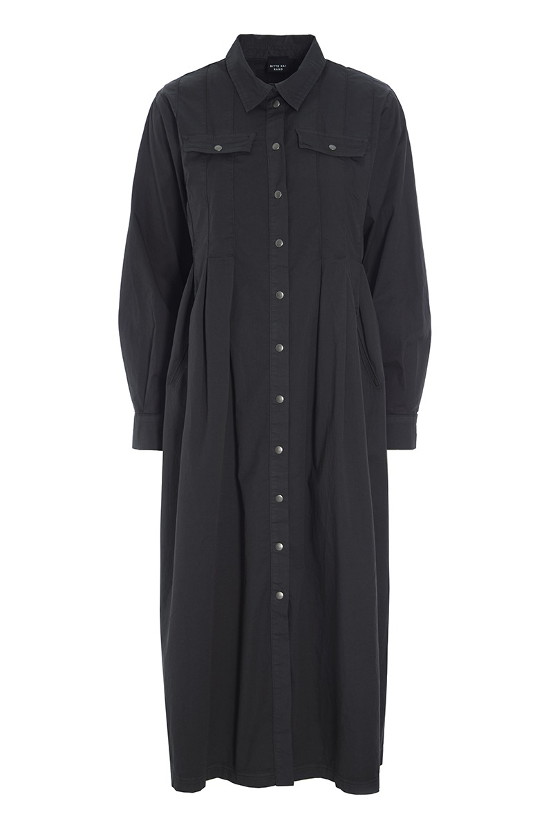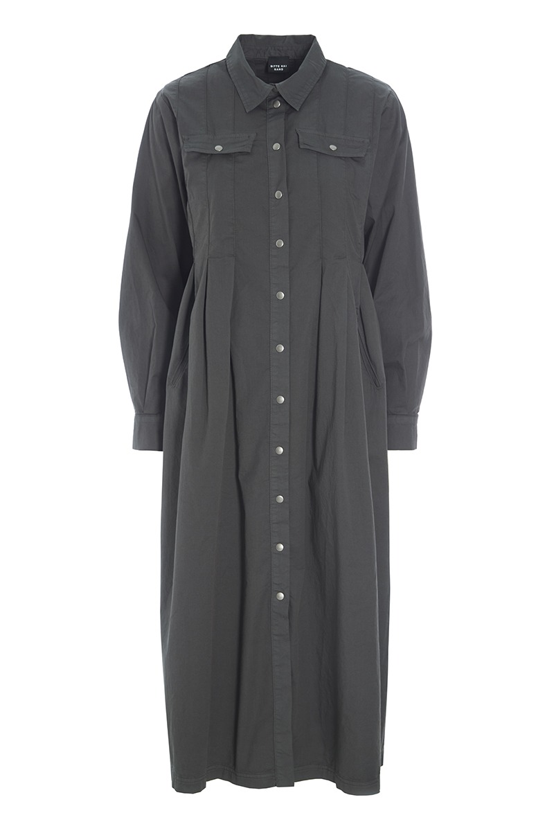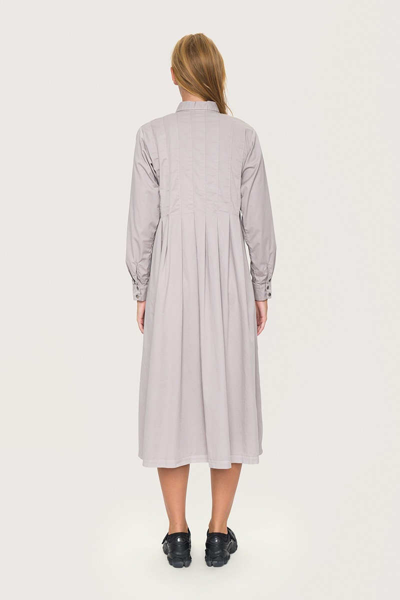 A beautiful dress made of a lovely cotton quality. The pleats are stitched at the top, giving the dress volume at the bottom. The style is simple, making it perfect for everyday wear. Add elegant jewelry, and it’s ready for a dinner in town.
