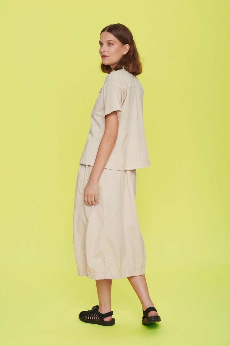 This skirt has an elastic waistband and hem, creating a flattering tulip shape. Wear it with a simple T-shirt or top, or pair it with the matching Senmei jacket for a timeless and stylish outfit.