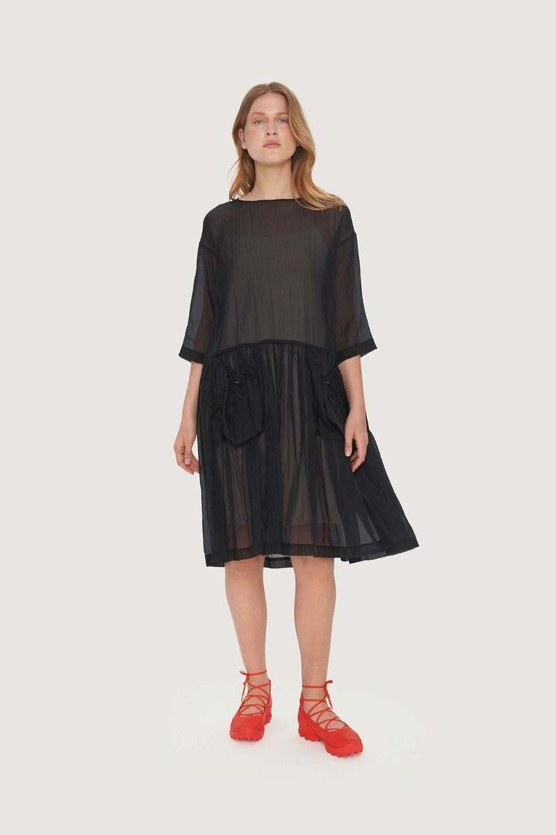 This sheer, airy dress has a beautifully voluminous cut and can be styled in countless ways. Try wearing it with a slim-fitting strap dress or top and trousers underneath. You can also play with adding colourful layers that show through the light fabric.
